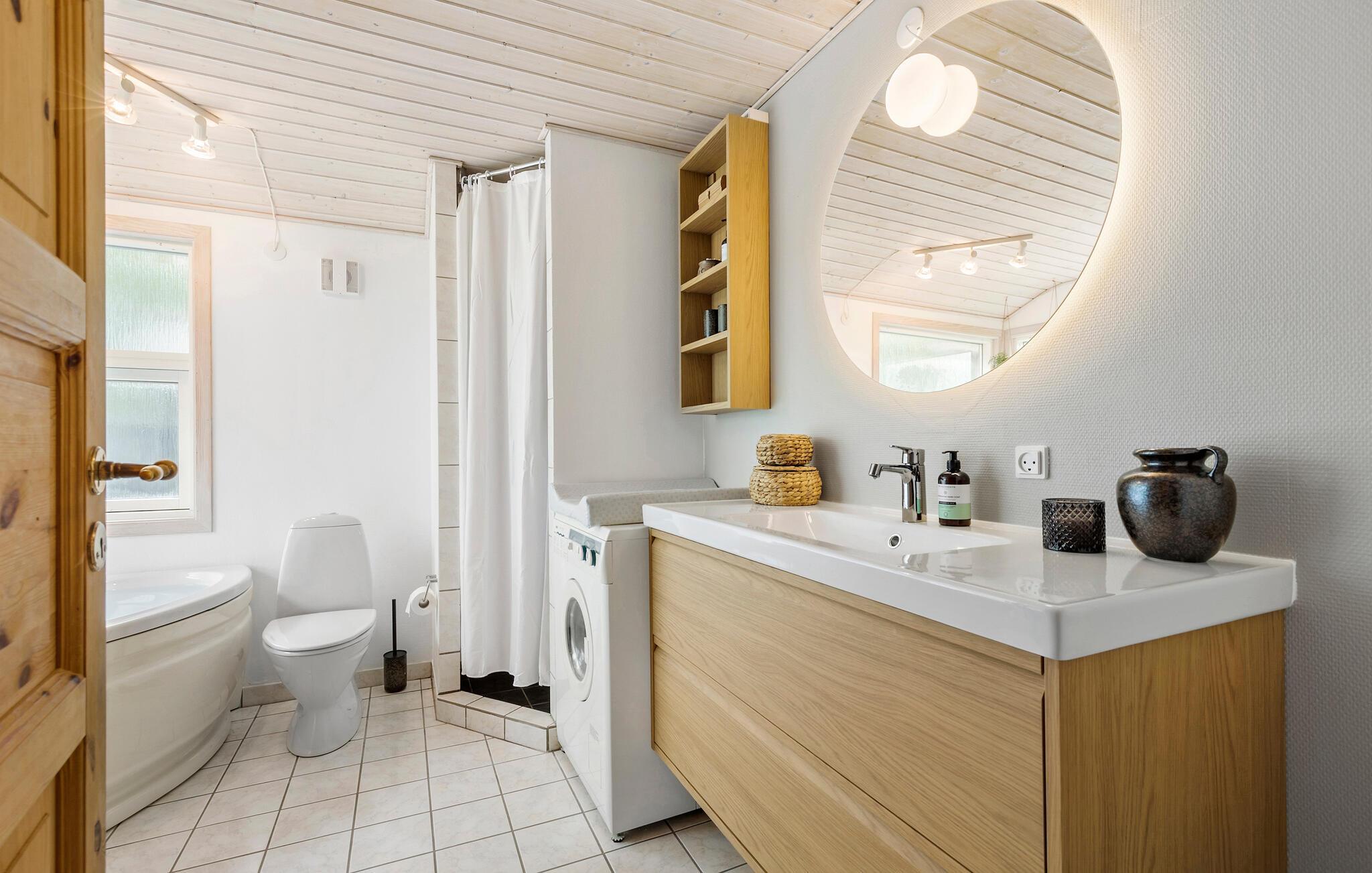 Entspannen Sie in diesem lichtdurchfluteten Ferienhaus mit Sauna, Whirlpool und großer Terrasse nahe Øer Strand in Dänemark.