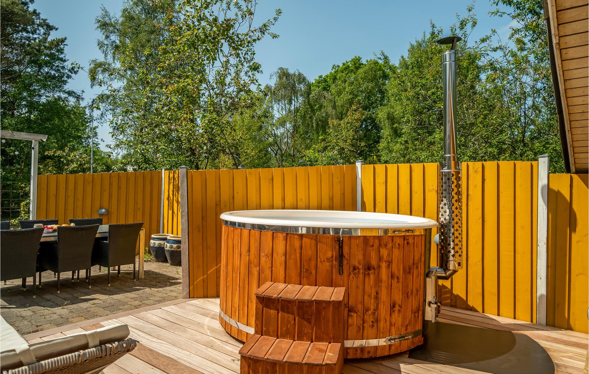 Dieses Domizil hat eine sehr naturnahe Atmosphäre, einen Kamin neben der bequemen Sofagarnitur und große Fenster, welche den Raum mit Tageslicht durchfluten. Um sich so richtig entspannen zu können lassen Sie es sich am besten im Whirlpool und der Sauna gut gehen, sowie die offene Terrasse lädt zu Grilltagen und schönen Sonnenstunden ein. Ihre Kinder haben auch Spiele für draußen, wie beispielsweise eine Schaukel und Sandkasten.
