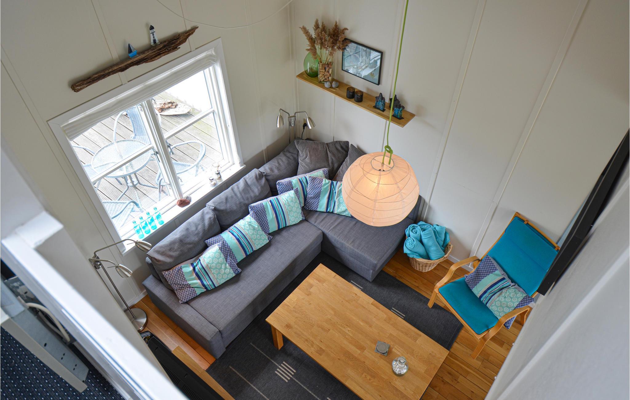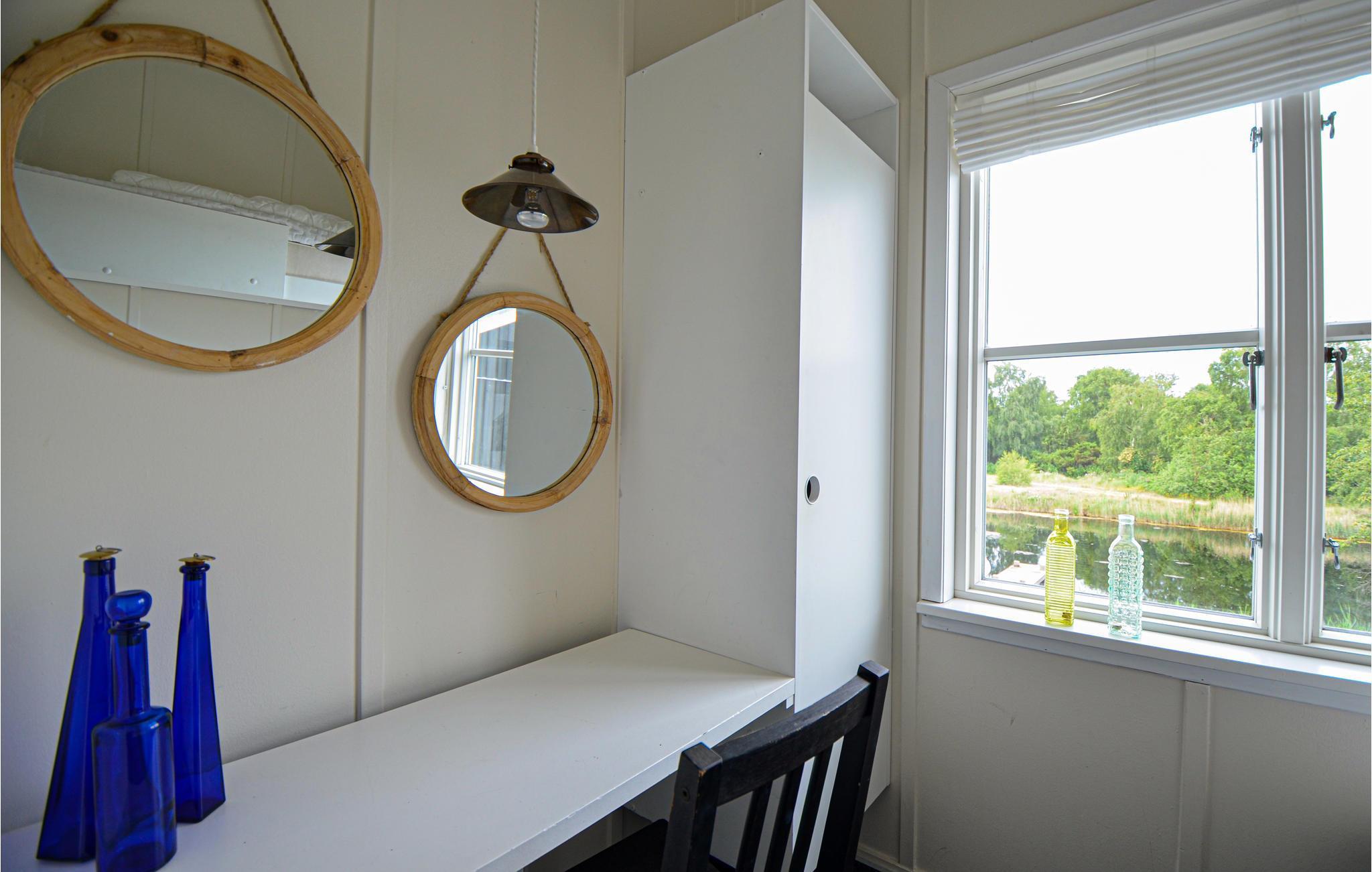 Schönes Ferienhaus mit Blick auf Wasser und schöne Natur.