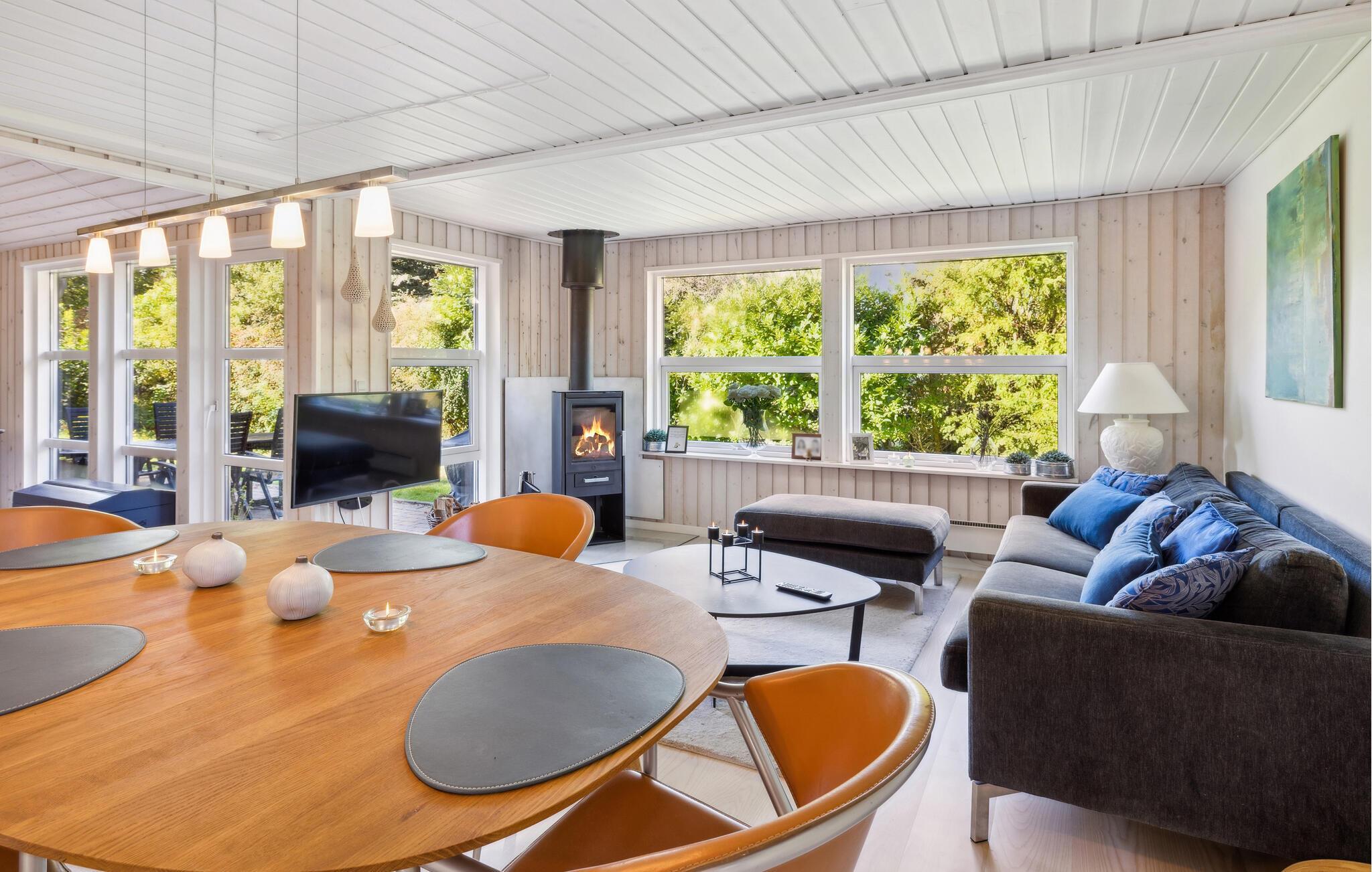 Dieses schöne Ferienhaus nahe Øer Strand ist der perfekte Ort für einen erholsamen Familienurlaub. Die klassisch eingerichteten, hellen Räume laden Sie zum Wohlfühlen ein. Der Wohnbereich mit Holzofen sorgt für Gemütlichkeit, während die gut ausgestattete Küche Sie zu gemeinsamen Kochabenden einlädt. Für entspannte Stunden bietet die Sauna eine willkommene Auszeit.