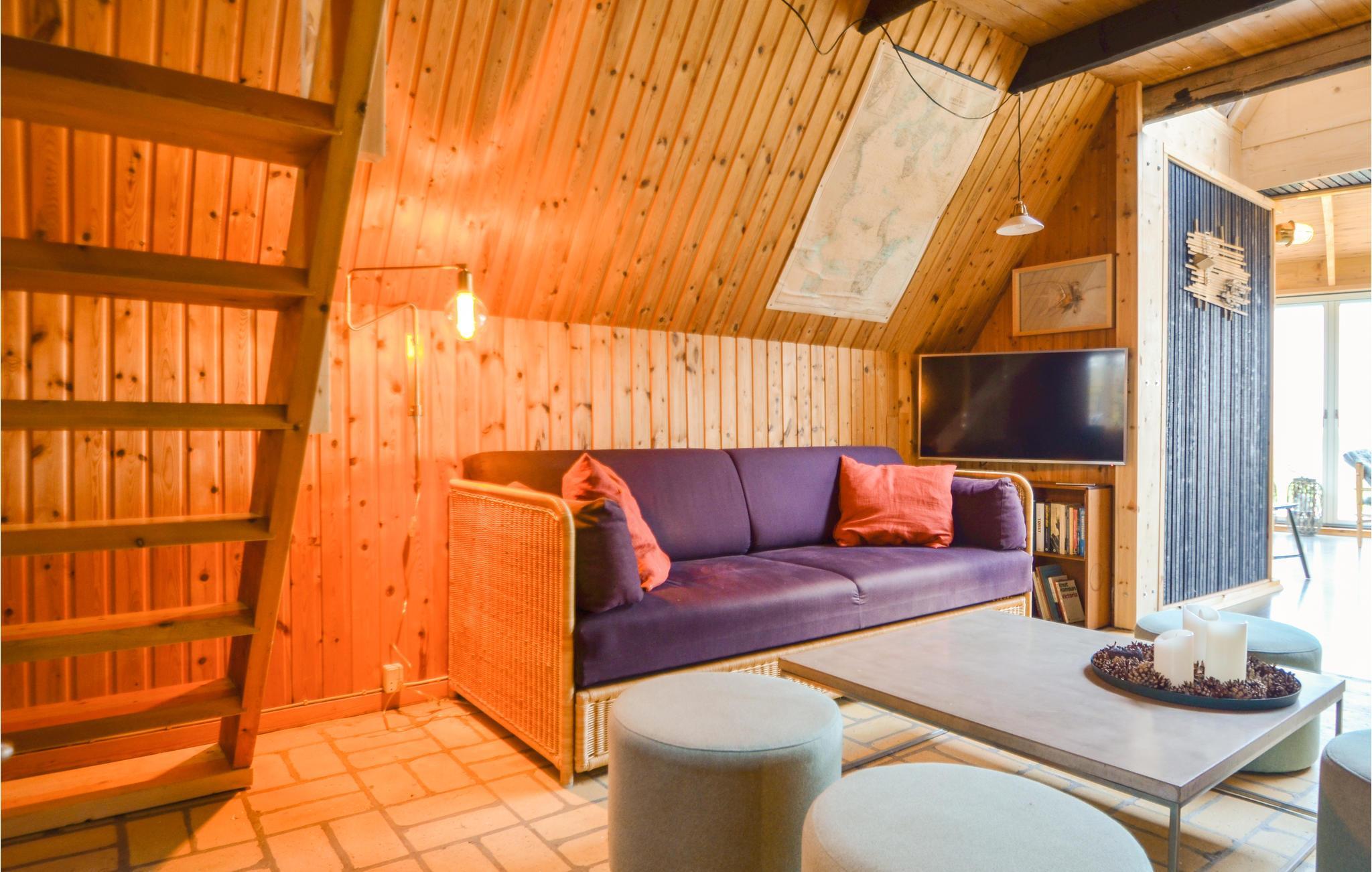 In der ersten Reihe zum Strand und Meer im beliebten Øer Strand liegt dieses architektonisch interessante Ferienhaus. Zur etwas anderen Einrichtung ist auch die Badewanne im Schlafzimmer zu zählen. Erleben Sie hier ein gut ausgestattetes Ferienhaus mit der schönen Aussicht auf das Meer. Auf der großen Terrasse nach Südwesten ist ein Shelter integriert, können Sie, völlig ungestört Sonne und Ruhe genießen. Nach einem Badeausflug im Meer erwartet Sie beim Haus eine Außendusche. Die Straße auf dem Foto ist die Zufahrt zum Haus. Die Treppe in den ersten Stock ist für Gehbehinderte nicht geeignet. In ca. 10 Minuten sind Sie im Auto in Ebeltoft.