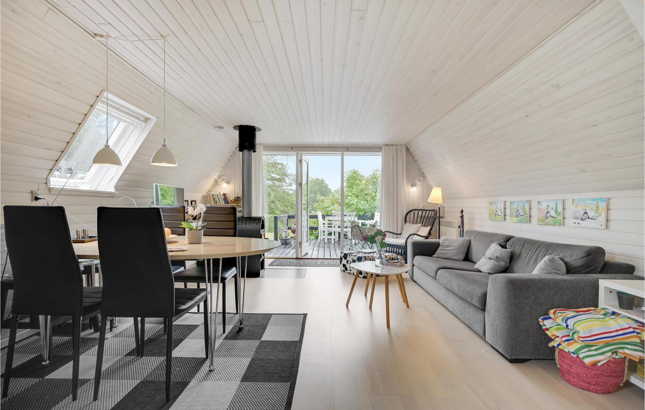 Ein wenig zurückversetzt vom Strand und dem Strandweg haben Sie hier ein Ferienhaus in einer sehr friedlichen Lage. Denn es liegt am Ende eines ruhigen Ferienhausweges. Das Haus wurde rundherum modernisiert und präsentiert sich einladend und gut eingerichtet. Die Terrasse liegt vor dem Wohnzimmer. In ein paar Minuten sind Sie in Ebeltoft, erleben Sie die besondere Atmosphäre dieser Stadt in den netten, engen Gassen. Auch ein Radweg führt in die Stadt. Auch in Shelter kann übernachtet werden, dabei bietet sich dann eine Aussicht auf die Felder hinter dem Ferienhaus.