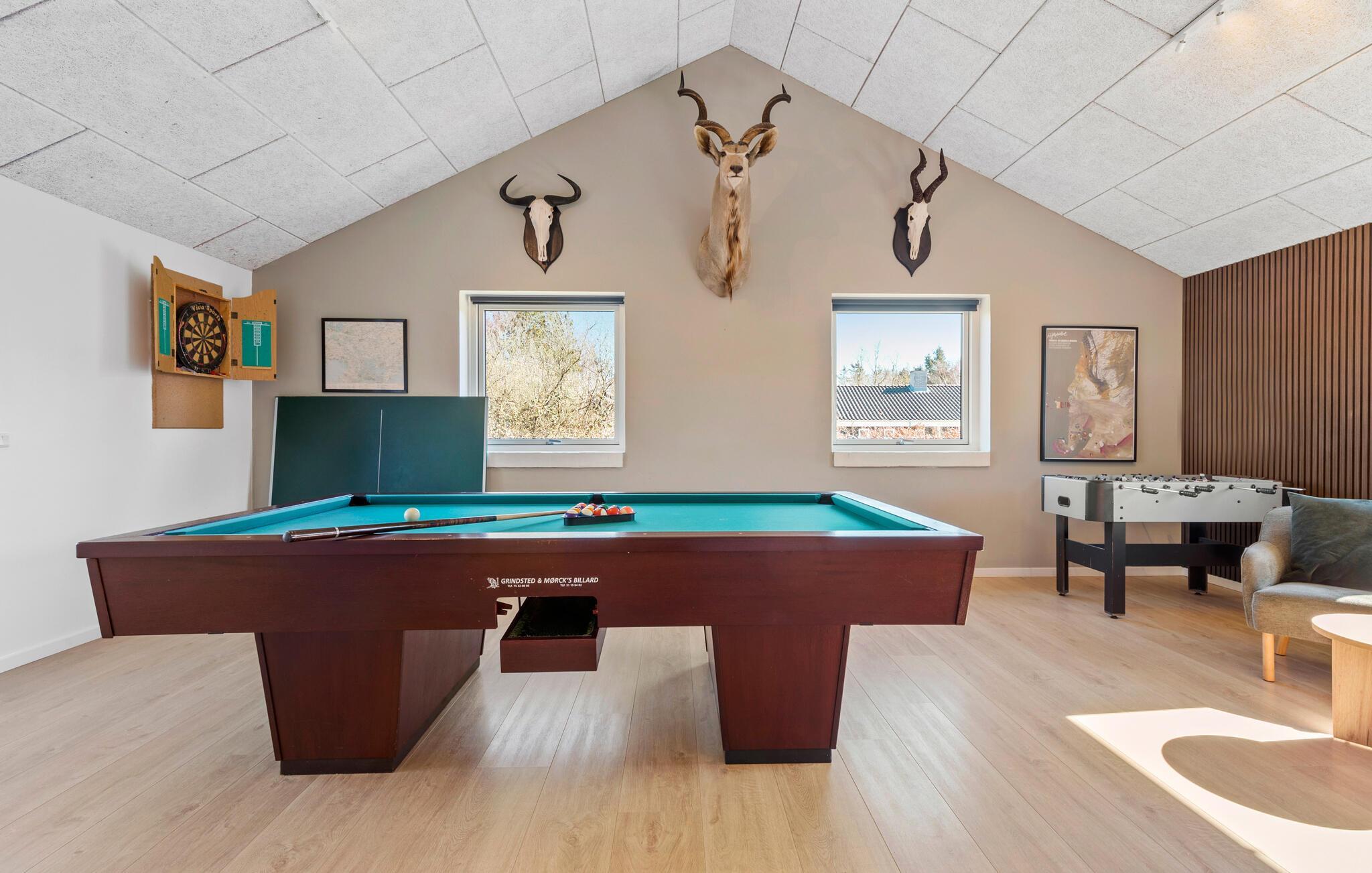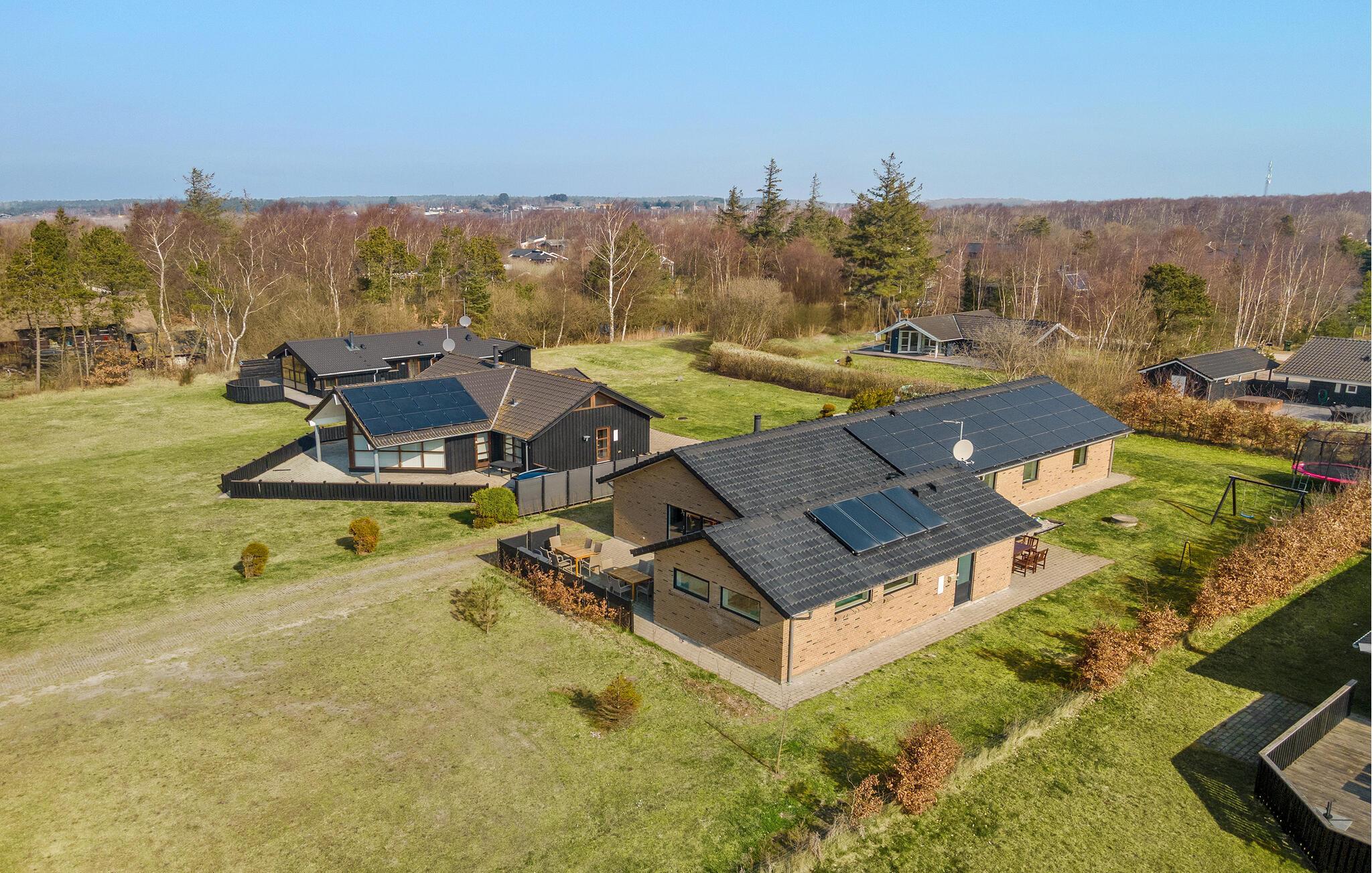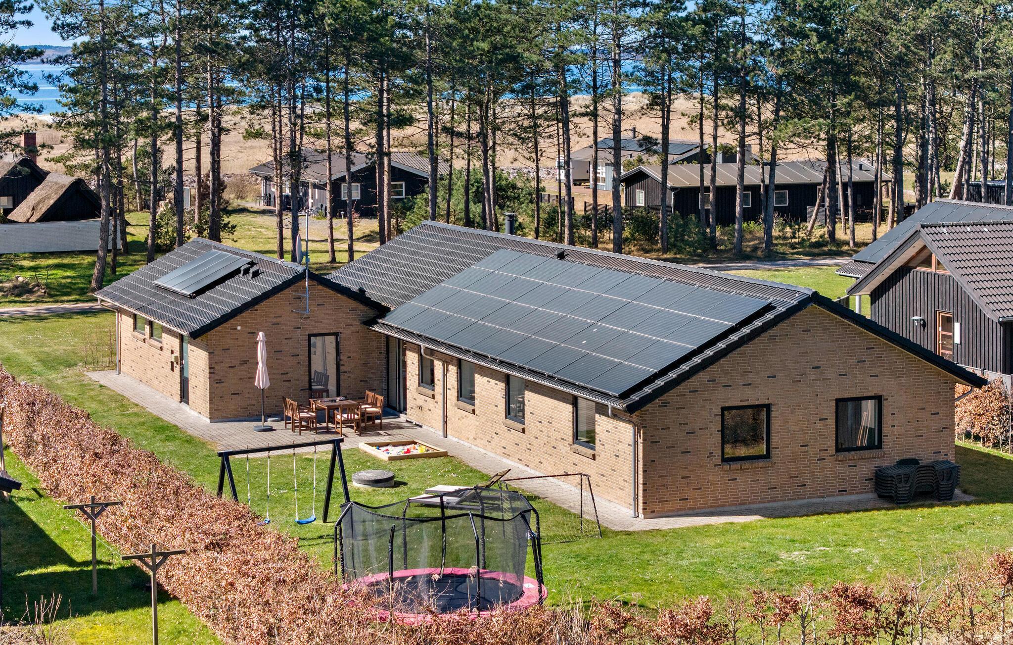 Modernes, energieeffizientes Ferienhaus nahe dem Strand mit Pool, Aktivitätsraum und großem Garten in Øer Strand, Dänemark.