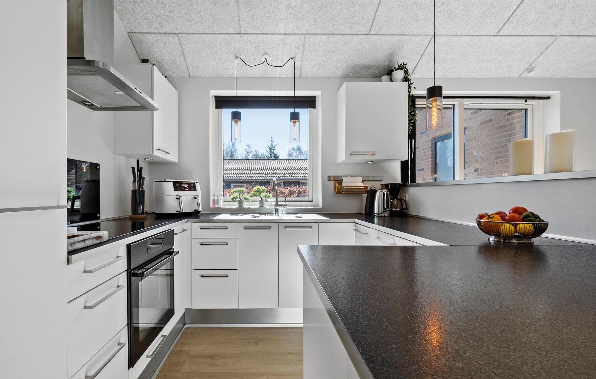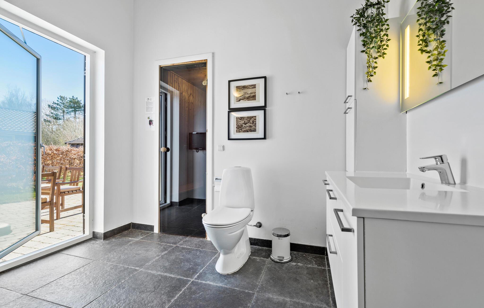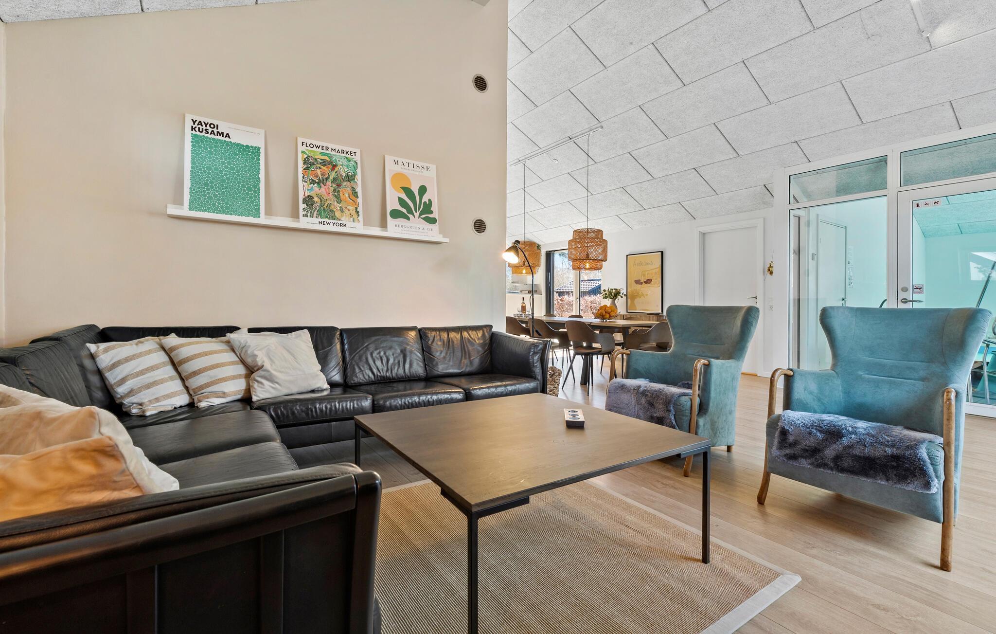 Ferien für die ganze Familie oder mehrere Familien gemeinsam - zu jeder Jahreszeit. Dieses topisolierte Haus ist besonders energiefreundlich. Es liegt herrlich, in der 2. Häuserreihe vom Strand, nahe am Wasser und verfügt sogar über einen (begrenzten) Meerblick. Sie finden es südlich von Ebeltoft und mitten im beliebten Øer Strand Freizeithausgebiet. Das Haus besitzt u. a. große Schlafzimmer und eine geräumige Wohnküche mit einem richtig großen, rechteckigen Tisch und schönen, modernen Möbeln. Vom Wohnraum können Sie den Poolraum, den separaten Kinderpool und die Rutsche überblicken. Der Aktivitätsraum steht für freundschaftliche Wettkämpfe bereit, z. B. mit Pool und Tischtennis. Im Garten finden Sie ein Trampolin. Die lange Küste macht die Region sehr beliebt.