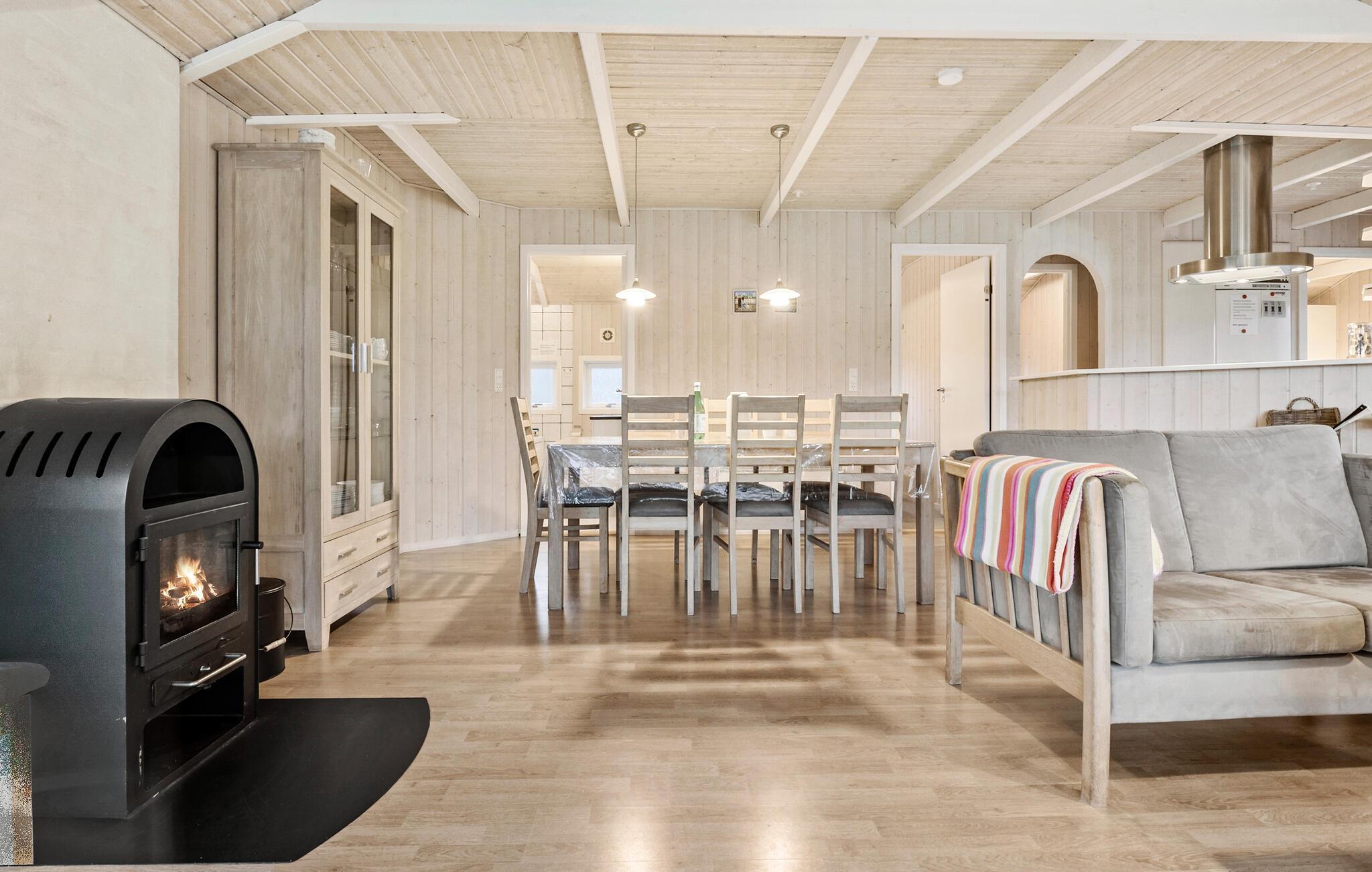Familienfreundliches Ferienhaus am Øer Strand mit Sauna, Kamin und großzügiger Terrasse für entspannte Urlaubstage.