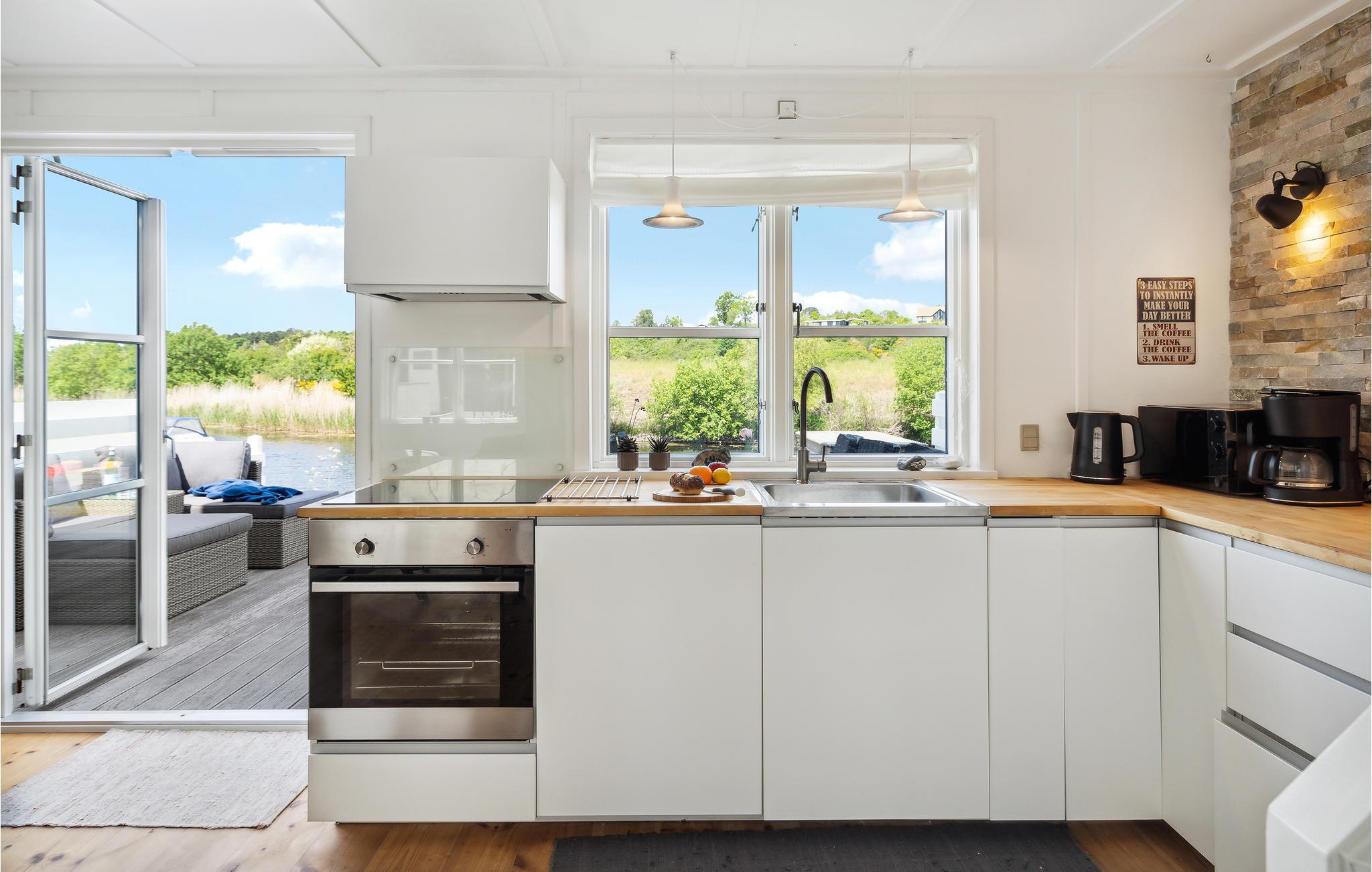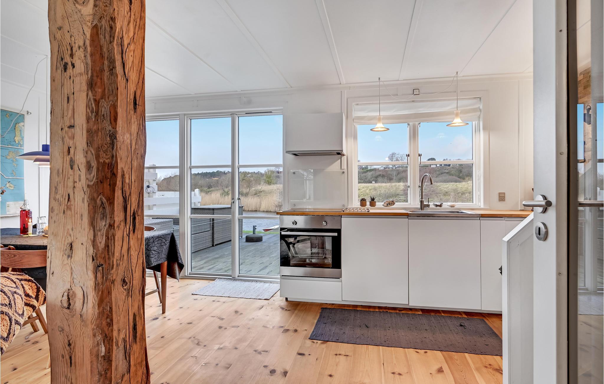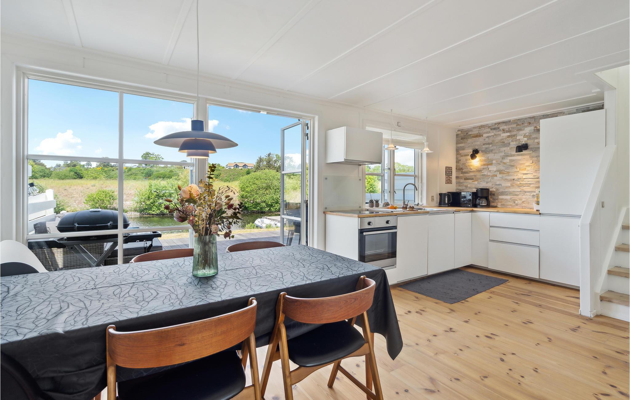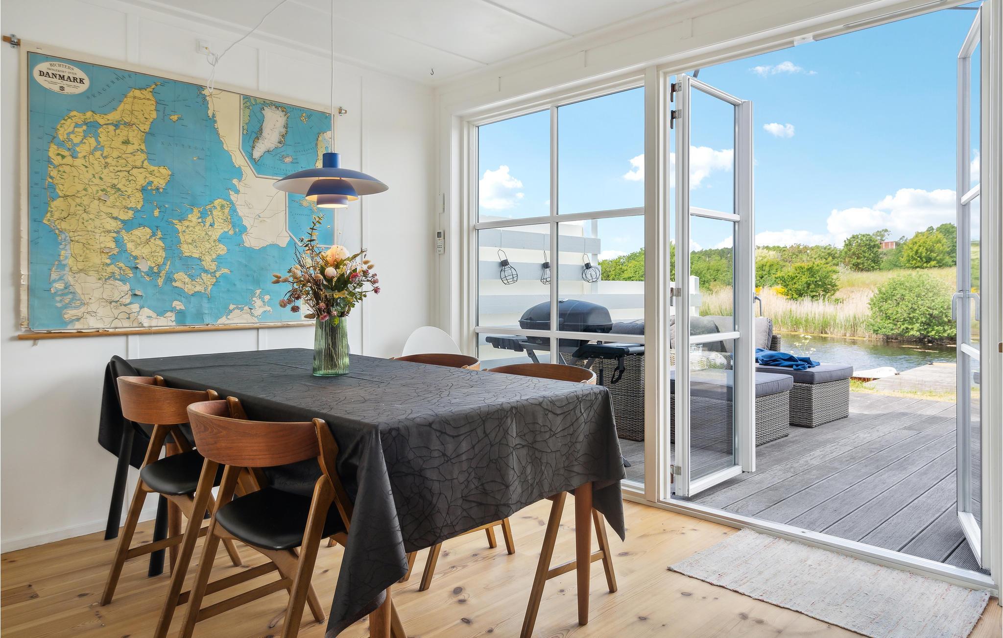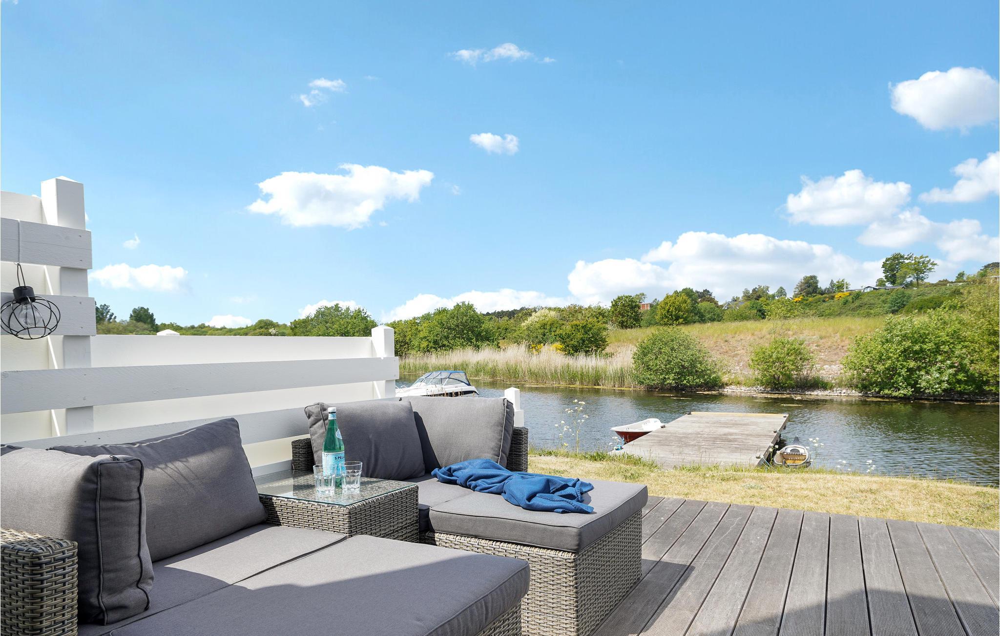 Kommen Sie mit Ihrer ganzen Familie oder Freunden in diese großartige Ferienunterkunft und genießen Sie eine willkommene Auszeit. Das Haus überzeugt mit der freundlichen, heimeligen Einrichtung, der geräumigen Wohnküche und vor allem der großen Terrasse direkt am Wasser. Das Erdgeschoss lädt Sie zum Entspannen, Spielen und gemeinsamen Kochen ein. Frühstücken Sie an morgendlicher Frische mit Blick über die Landschaft und planen Sie Ihren Tag oder sitzen Sie am Abend noch gesellig beisammen, um den Tag ausklingen zu lassen. Direkt vor dem Haus befindet sich ein kleiner Steg, an dem Paddelboote oder ähnliches angelegt werden kann.