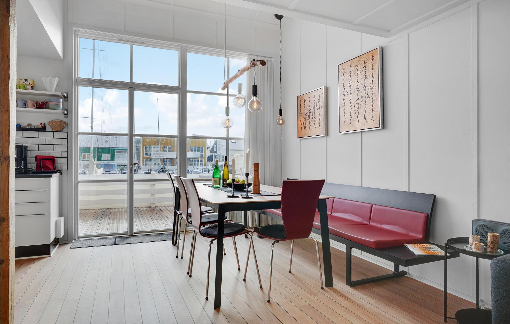 Gemütliches Reihenhaus direkt am Hafen von Ebeltoft mit Terrasse und Blick auf das Wasser.