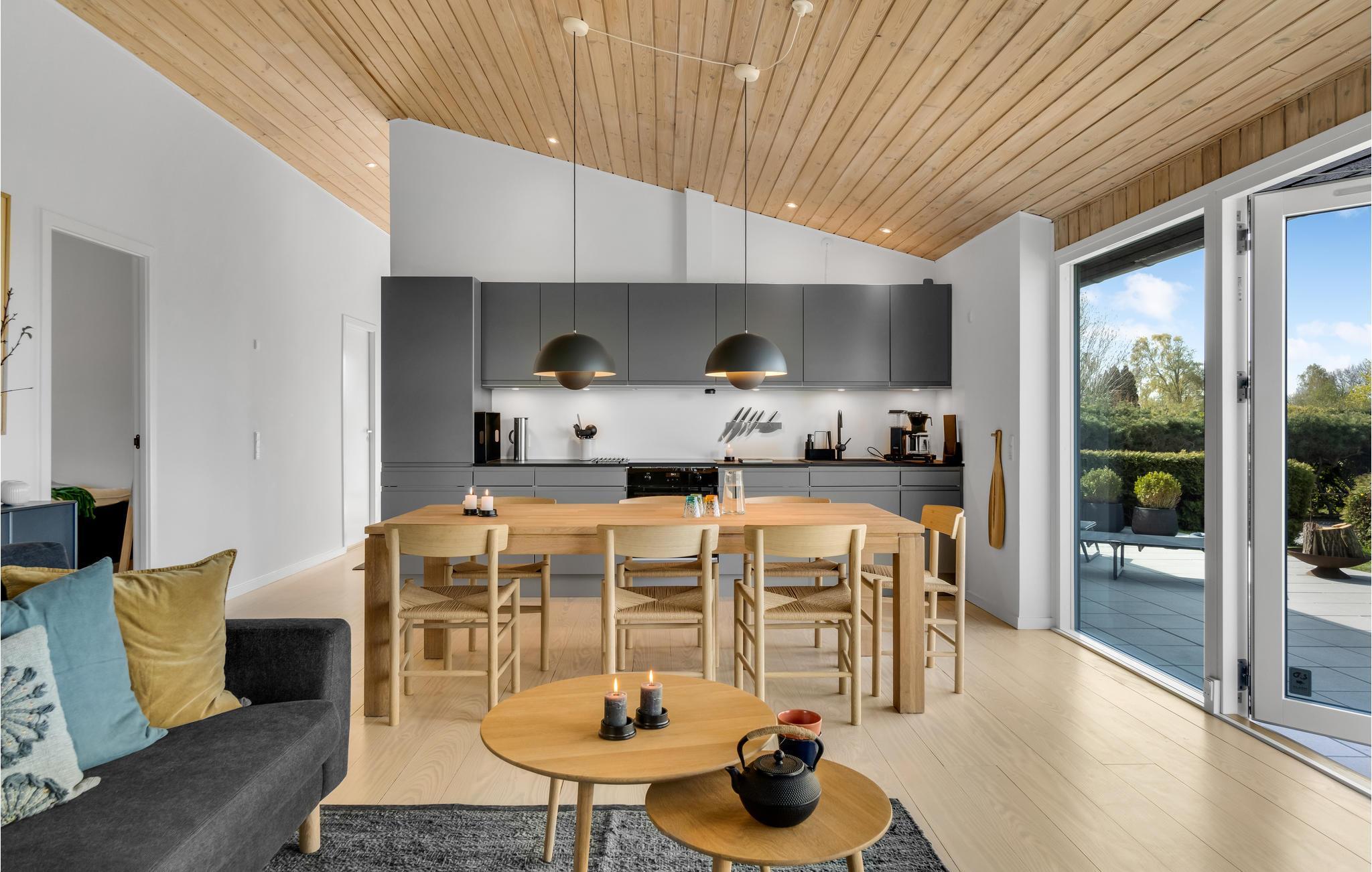 Kommen Sie nach Ølsted Strand und verbringen einen fantastischen Urlaub in diesem tollen Haus. Im Inneren des Hauses empfängt Sie eine moderne und geschmackvolle Einrichtung. Die herrliche Küche macht das gemeinsame Kochen zu einem Erlebnis. Spielen Sie am Esstisch Brettspiele oder entspannen sich auf dem Sofa bei einem Film und einem prasselnden Kaminfeuer. Von dem großen Wohnraum haben Sie einen großartigen Blick auf die Terrasse und den gepflegten Garten. Bevor Sie sich aber nach draußen begeben, können Sie sich noch in der Sauna entspannen und Ihren Alltagsstress ausschwitzen. Anschließend können Sie sich im Freien abkühlen und Ihren Kindern beim Spielen auf dem Rasen zusehen. Genießen Sie ihre Mahlzeiten und gegrillten Speisen auf der Terrasse und lassen laue Sommerabende im Freien ausklingen.