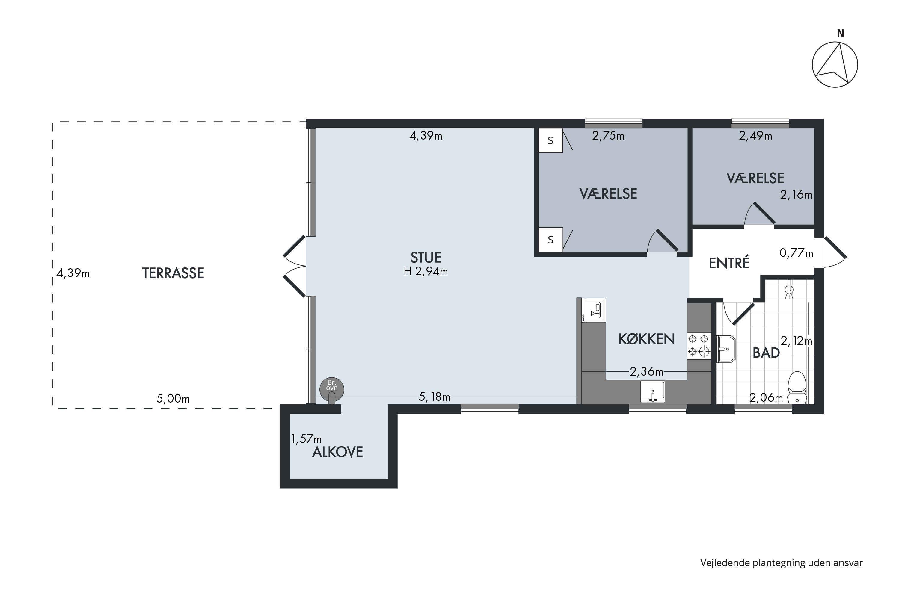 Wohnküche. 4 Betten in einem Doppelzimmer, einem Einzelzimmer und einer Schlafnische im Wohnzimmer. Ein Kinderbett. Einer großen Terrasse mit Tisch und Stühlen. TV/Cinch, WLAN, Geschirrspüler und Waschmaschine.