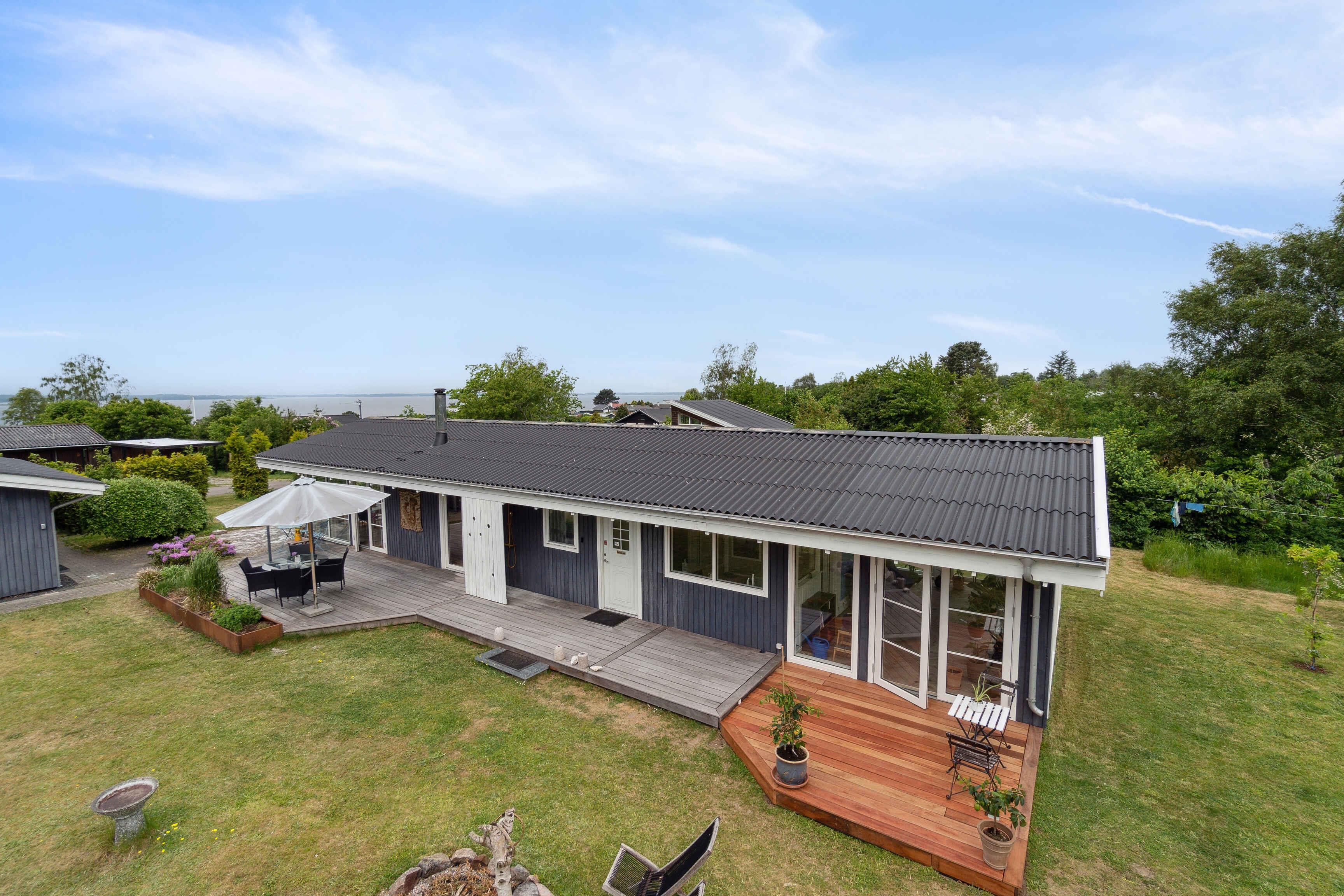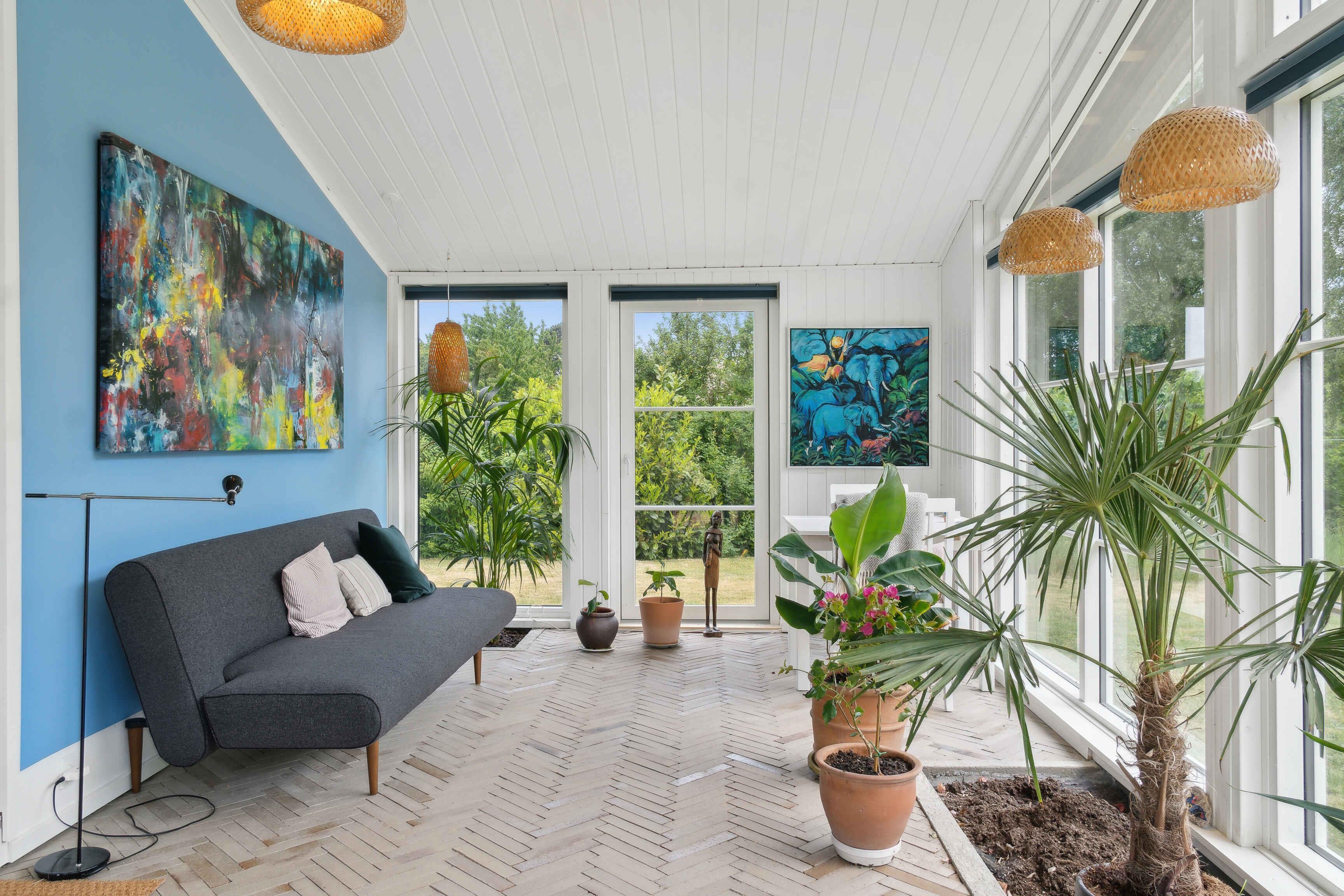 Großes, charmantes Ferienhaus nahe Roskilde Fjord mit Garten, Orangerie und Wildnisbad für erholsame Urlaubsmomente.