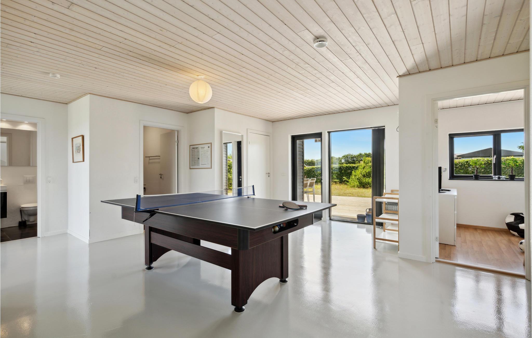 Auf der Insel Mors begrüßt Sie nur wenige hundert Meter vom Wasser entfernt dieses komfortable und gut ausgestattete Ferienhaus mit Platz für Ihre Großfamilie. Hier finden Sie einen ruhigen Ort für gemütliche Urlaubstage mit Ihren Lieben in der Nähe vom Wasser und reizvoller Natur. Genießen Sie morgens den ersten Kaffee des Tages beim Blick auf den Fjord vom gemütlichen Wohnraum aus oder lassen Sie sich mit dem Frühstück auf der Terrasse in den ersten Sonnenstrahlen nieder. Tagsüber können Sie entspannte Stunden in den Gartenmöbeln verbringen, während die Kinder sich auf der Grünfläche austoben, und sich ab und zu bei einer Runde Tischtennis vergnügen.