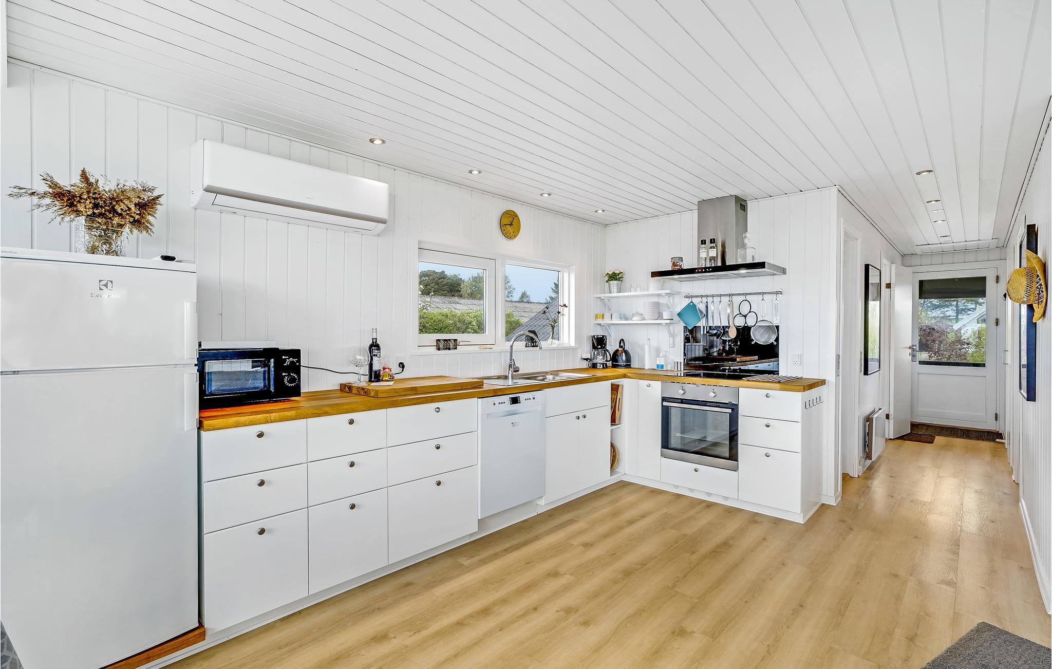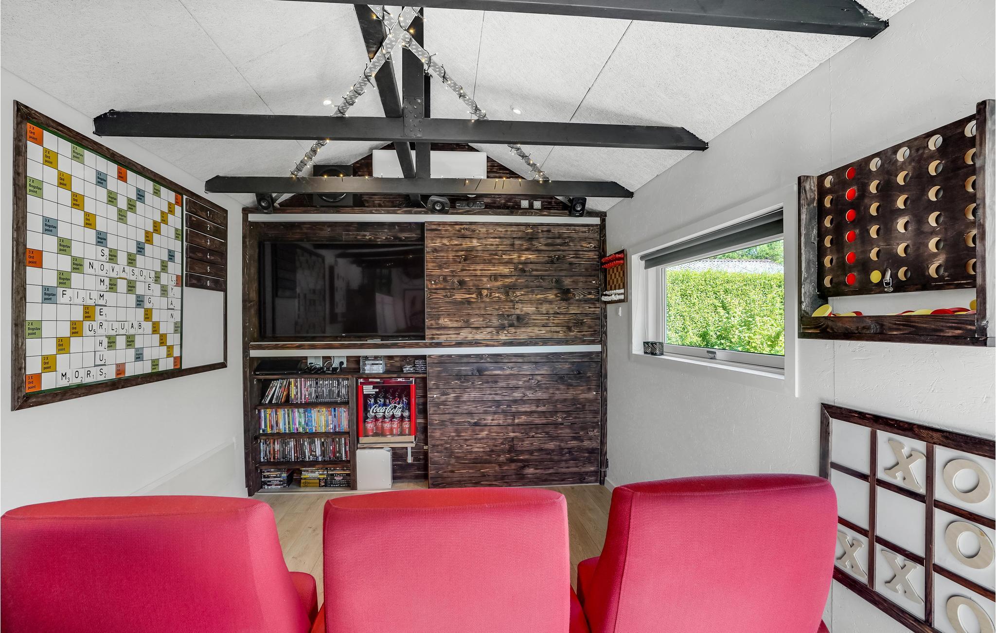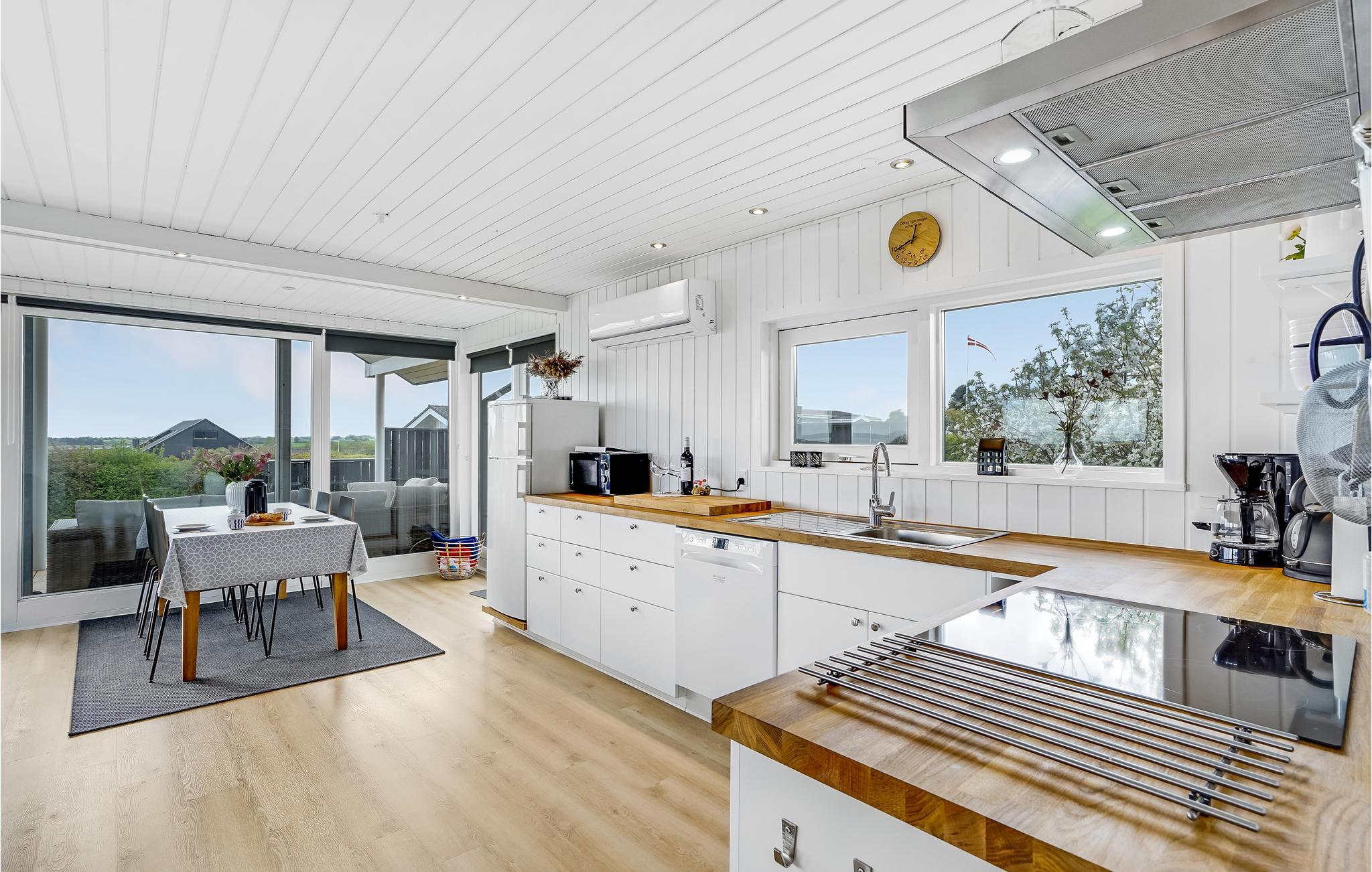 In diesem ansprechenden und renovierten Ferienhaus steht alles bereit für einen erholsamen Urlaub mit der ganzen Familie. Das Haus bietet mit 3 Schlafzimmern Platz für bis zu 6 Personen. Die Einrichtung der Räumlichkeiten ist hell und modern, durch große Fenster gelangt viel Licht ins Innere des Hauses. Vom Essplatz haben Sie einen wunderbaren Blick ins Freie, und der Kaminofen spendet zusätzliche Gemütlichkeit. Im Nebengebäude kann man sich gegenseitig zu verschiedenen Spielen herausfordern oder sich in die Kinosessel setzen und einen guten Film ansehen.