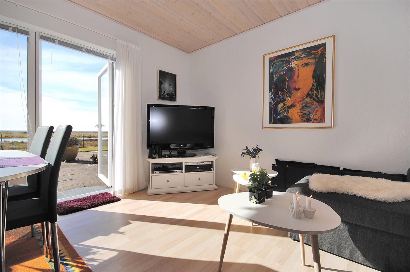 Dicht am Limfjord finden Sie diese Ferienwohnung mit Aussicht auf das Wasser – sowohl von der Wohnung als auch vom Grundstück. Die Wohnung liegt auf einem gemeinsamen Gartengrundstück mit Rasen. Am einen Ende des Grundstücks liegt ein großer See. Zur Wohnung gehört eine teilweise abgeschirmte, gegen Süden gerichtete Terrasse - von hier können Sie sowohl die Aussicht auf den Limfjord als auch den See genießen. Übrigens: Zusätzlich zu dem einen Schlafzimmer gibt es eine Doppelschlafcouch im Wohnzimmer.