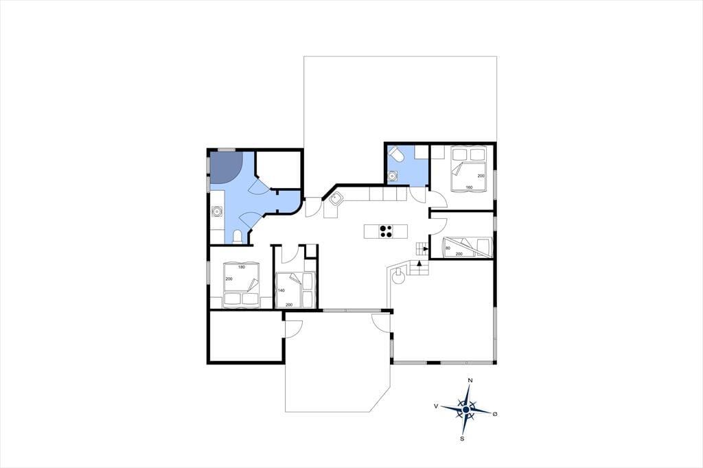 Das Haus ist mit vier guten Schlafzimmern ausgestattet, drei davon mit Doppelbetten und eines mit einem Etagenbett. Im Haus gibt es ein großes Badezimmer mit Whirlpool und Sauna sowie eine kleine Gästetoilette. Das Herz des Hauses bilden die große Küche und der Wohnraum, welche durch einige Stufen voneinander abgeteilt sind. Vom Wohnraum und von zwei Schlafräumen aus, können Sie einen tollen Ausblick über das Kattegat genießen.