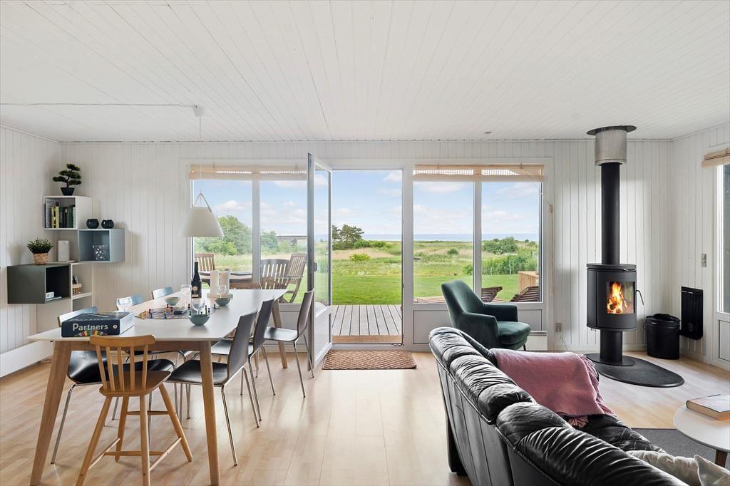 In diesem Ferienhaus ist man sofort eingenommen von der spektakulären Aussicht aus dem Wohnzimmerfenster. Hier finden Sie alles, was Sie für einen wundervollen Urlaub brauchen. Der Sammlungspunkt für die Familie ist die offene Wohnküche, wo gemeinsam gekocht und gespielt werden kann. Oder man entspannt sich auf dem großen Ecksofa. Die behagliche Wärme dazu, liefert der kleine Kaminofen im Wohnbereich. In der Küche finden Sie sowohl einen Geschirrspüler, eine Mikrowelle und einen modernen Herd mit Ceranfeldern. Hier läßt sich leicht ein tolles Essen zubereiten, z. B. mit frischem Fisch aus dem Hafen. Das Haus hat drei Schlafzimmer. Zwei davon mit Doppelbetten und ein Zimmer mit zwei Einzelbetten. Das Badezimmer ist sehr geräumig. Hier finden Sie neben Whirlpool Waschmaschine.