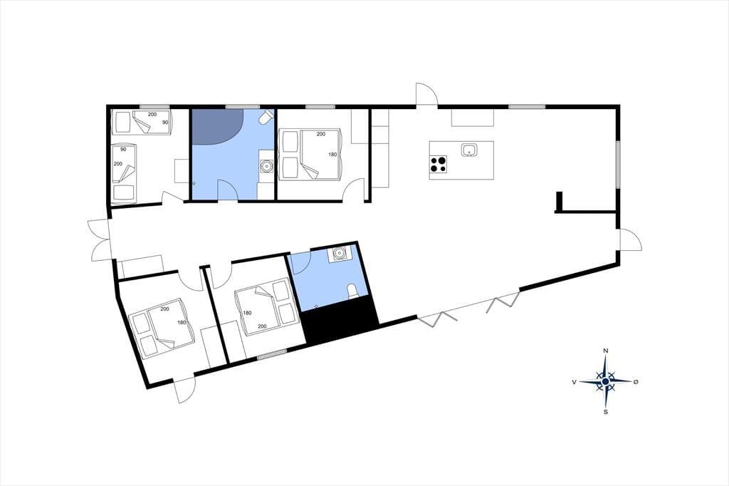 Mit einer Wohnfläche von 142 m2 haben Sie drinnen viel Platz, um Ihr Urlaubsleben zu entfalten. Es gibt vier Schlafzimmer, die alle mit bequemen Betten und Kleiderschränken ausgestattet sind. Über eine Leiter gelangt man zu einem Dachboden, der eine gute Ergänzung zu den Zimmern darstellt, da er auch die Möglichkeit bietet, auf zwei Matratzen zu schlafen. Es gibt zwei Badezimmer, von denen eines sowohl eine Badewanne als auch ein Waschbecken hat. Alle Räume wirken hell und einladend - nicht zuletzt das Wohnzimmer, das groß ist, hohe Decken hat und mit Oberlichtern und mehreren Gartentüren ausgestattet ist. Wohnzimmer und Küche sind hier vereint, und die Einrichtung ist sowohl schön anzusehen als auch bequem und funktionell, so dass Sie sich auf viele schöne und entspannende Momente freuen können.