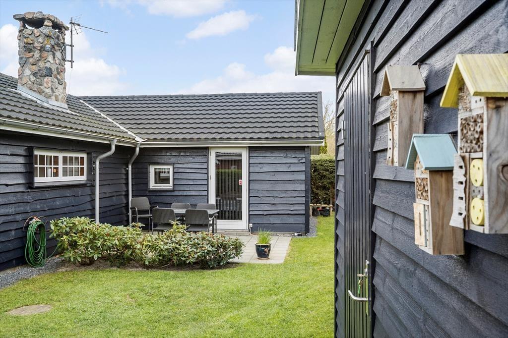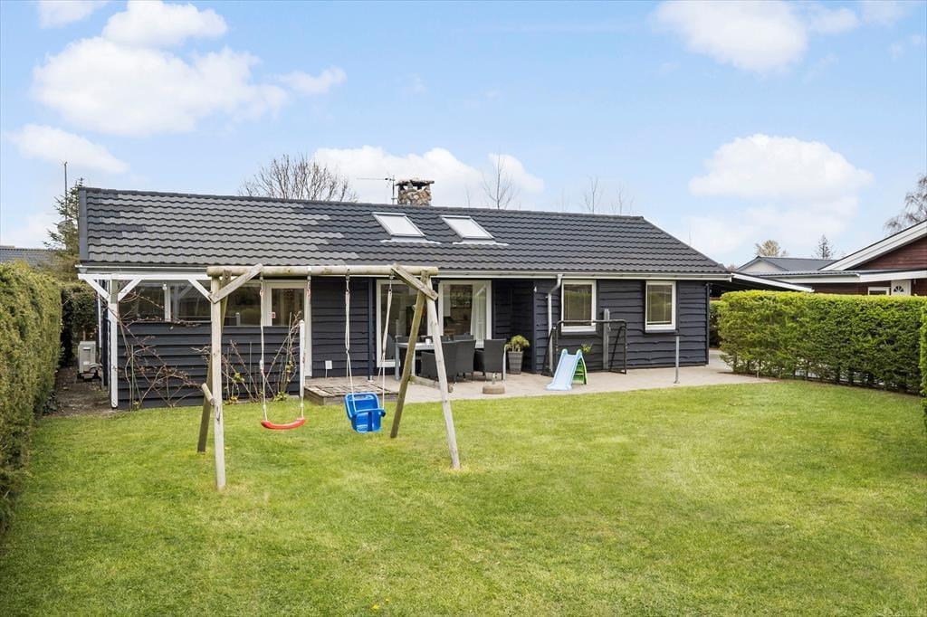 Vom Wohnzimmer aus haben Sie direkten Zugang zur schönen Terrasse, die sich nach Süden hin ausbreitet und in den großen Vorgarten übergeht. Sowohl die Loungemöbel als auch der Gartentisch sorgen dafür, dass Sie es sich bequem machen können, während Sie die Sonne und das ruhige Ferientempo genießen. Und wenn die Kinder etwas mehr Action möchten, stehen eine Sandkiste und Schaukeln zur Verfügung – und eine gute Rasenfläche zum Austoben. Auf der anderen Seite des Hauses wartet noch eine Terrasse, und auch hier ist es herrlich, wenn die Sonne hoch am blauen Himmel steht und alles ruhig und friedlich in der Sackgasse ist.