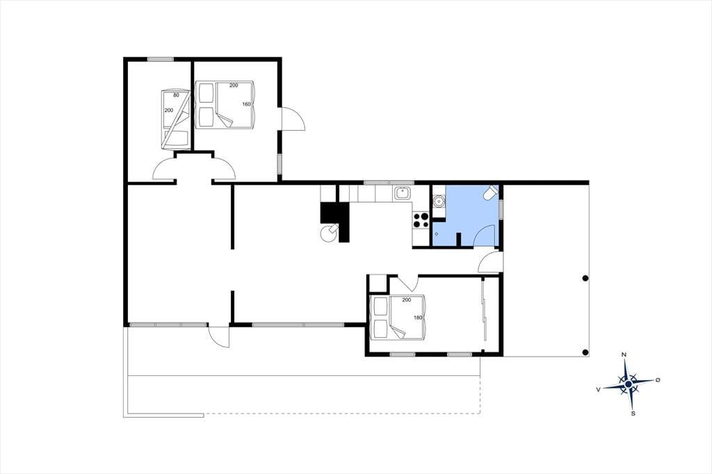 Die Einrichtung des Ferienhauses ist ideal für sechs Personen, denn es gibt drei Schlafzimmer und ein schönes Badezimmer mit Dusche, das praktisch direkt beim Eingang liegt. Der Raum, in dem Sie und Ihre Lieben die meisten wachen Stunden des Tages verbringen werden, ist sicherlich das Wohnzimmer, denn hier können Sie sich in hellen, stilvollen und durchweg einladenden Rahmen gemütlich machen. Die kleinsten Kinder werden es lieben, dass sie ihren eigenen Tisch haben, an dem sie zeichnen und spielen können, während die Erwachsenen noch etwas länger am Esstisch sitzen. An einem kühlen Tag können Sie sich in der Sofaecke entspannen und den Blick auf die tanzenden Flammen im Kaminofen genießen, und wenn die Kaffeetasse leer ist, sind es nur wenige Schritte bis zur offenen Küchenecke, wo Sie leicht mehr Kaffee zubereiten können.