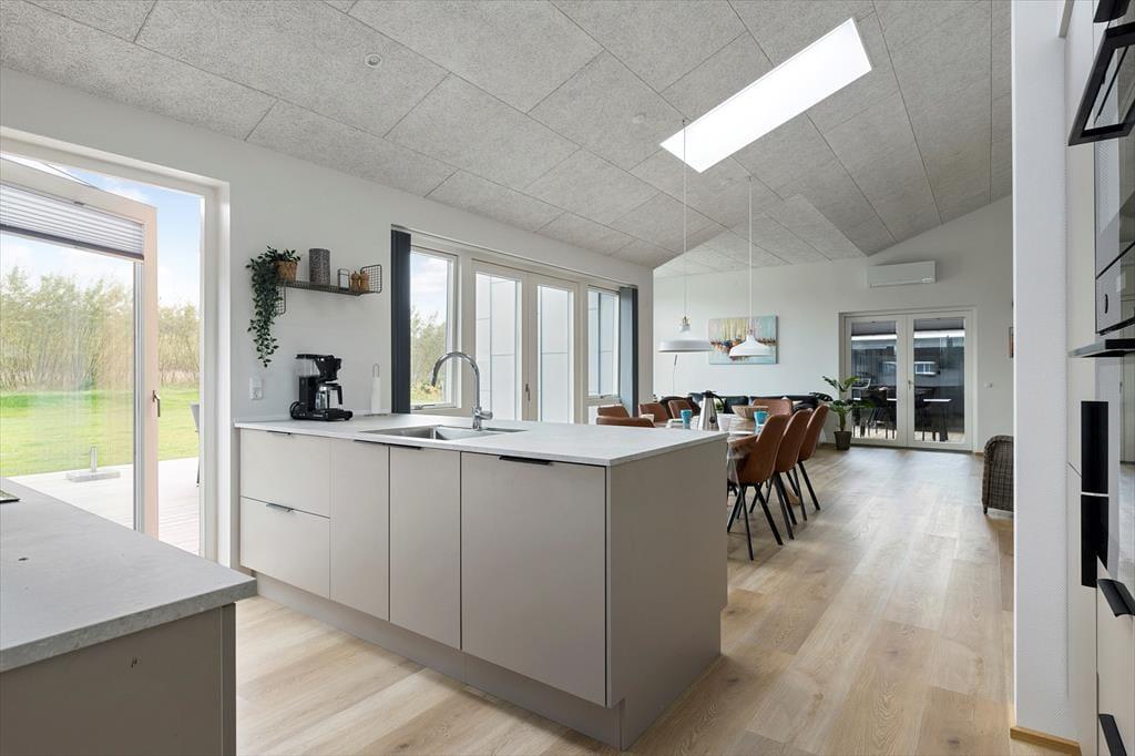 Wenn du das neu gebaute Ferienhaus von 2024 betrittst, wirst du sofort von einer hellen und modernen Einrichtung empfangen, die Komfort und Entspannung ausstrahlt. Das Herz des Hauses ist der große Wohnbereich, in dem Küche, Essplatz und Wohnzimmer eine Einheit bilden – perfekt für gemeinsame Stunden und gemütliche Mahlzeiten. Hier kannst du dir auf dem Sofa mit einem guten Buch bequem machst oder eine entspannte Runde Tischfußball mit den Kindern spielst. Sowohl Groß als auch Klein werden diese spaßige Aktivität lieben, bei der der Wettbewerbsgedanke freien Lauf nehmen kann. Nach einem aktiven Tag kannst du dich im luxuriösen Badezimmer verwöhnen, das einen direkten Zugang zu einem privaten Außen-Whirlpool und einer Außendusche bietet – Wellness auf einem ganz neuen Niveau.