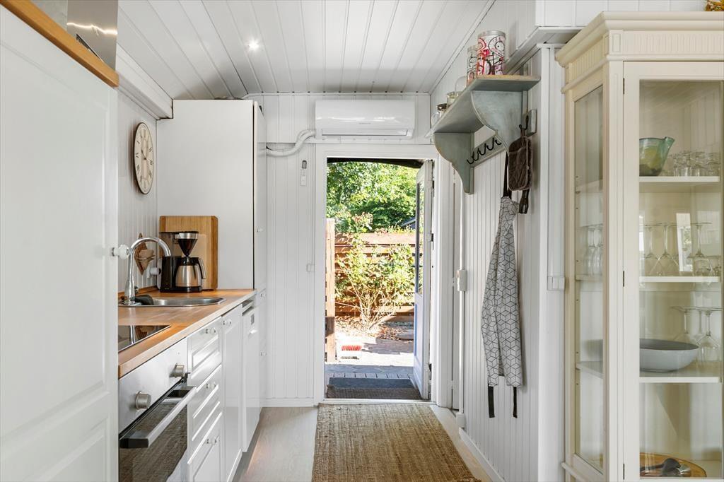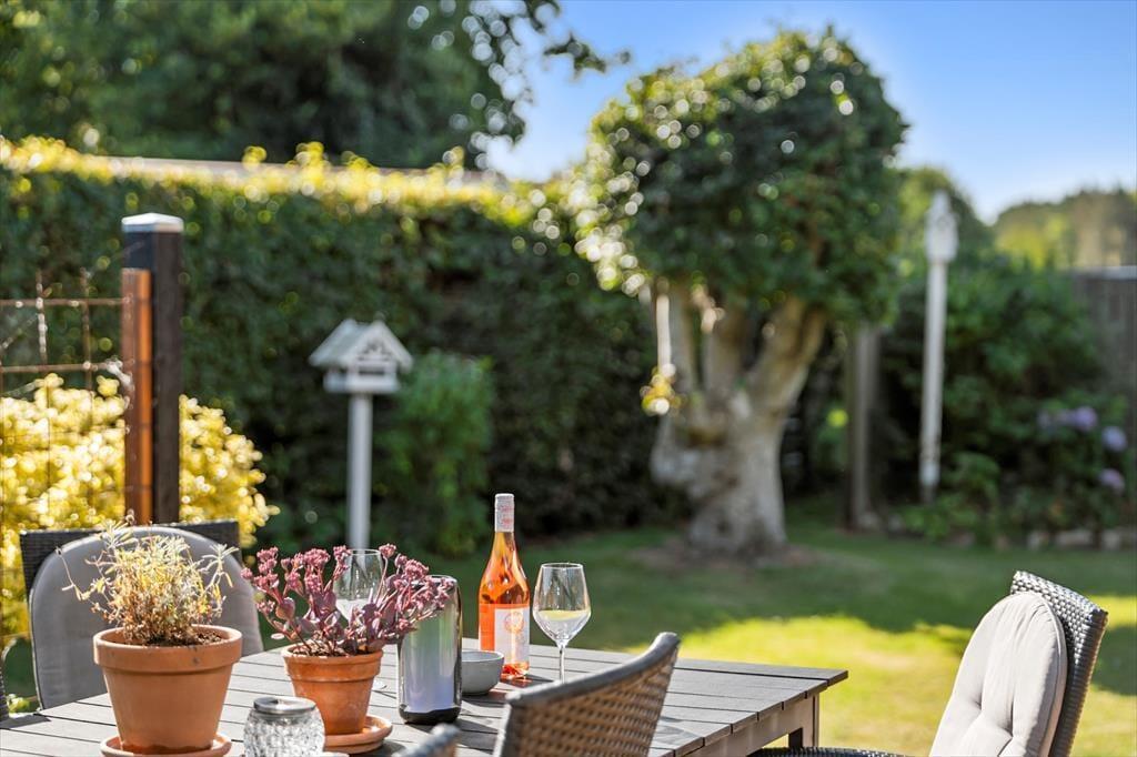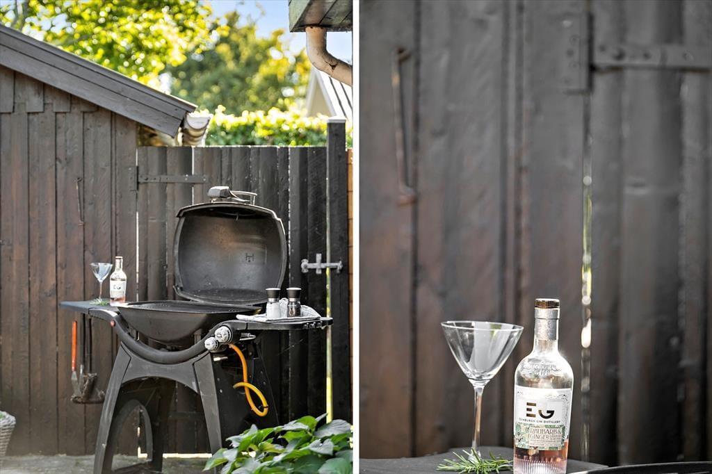 Das Grundstück ist 765 m² groß und gut von hohen Bäumen und Randbepflanzung umgeben. Hier haben Sie viel Privatsphäre, und es gibt viel Platz zum Toben auf der großen Rasenfläche, ob es nun Fußball, Wikingerschach oder etwas ganz anderes ist. Sie können sich auch einfach ins grüne Gras legen und die Sonne und die frische Luft genießen. Die gemütliche Terrasse ist ein wunderbarer Ort, um Mahlzeiten im Freien in der grünen und stimmungsvollen Kulisse zu servieren. Der Grill steht bereit, um angezündet zu werden, wenn der Tag zu Ende geht – ein gut zubereitetes Abendessen unter den Sternen bringt zusätzliche Punkte auf das Wohlfühlkonto.