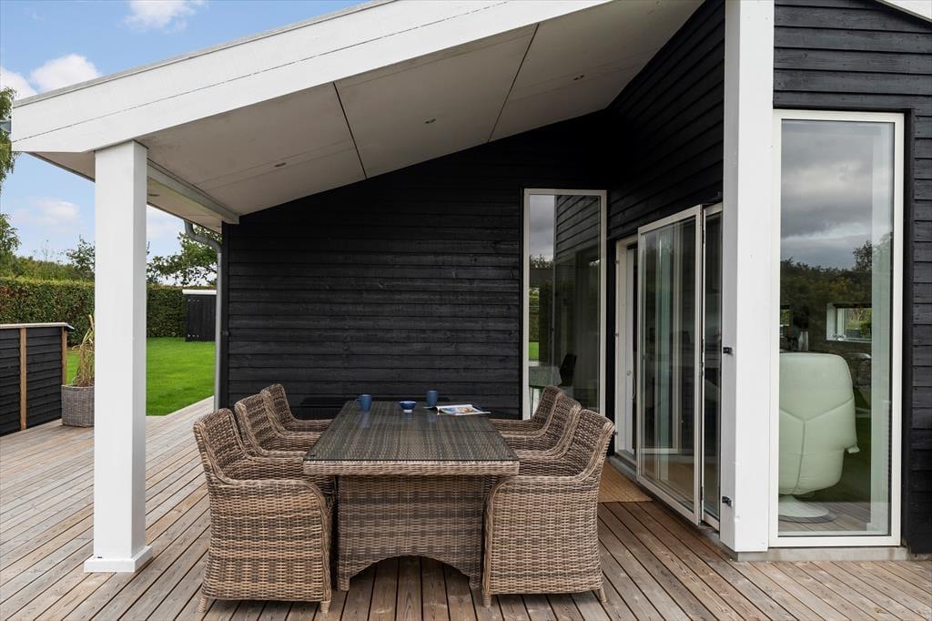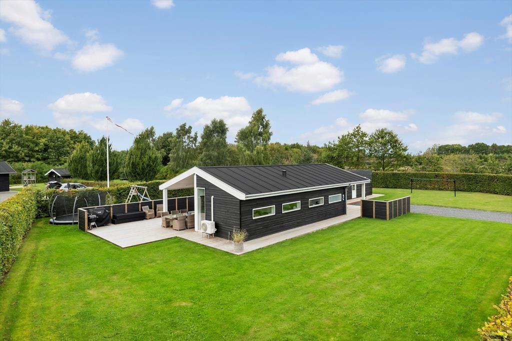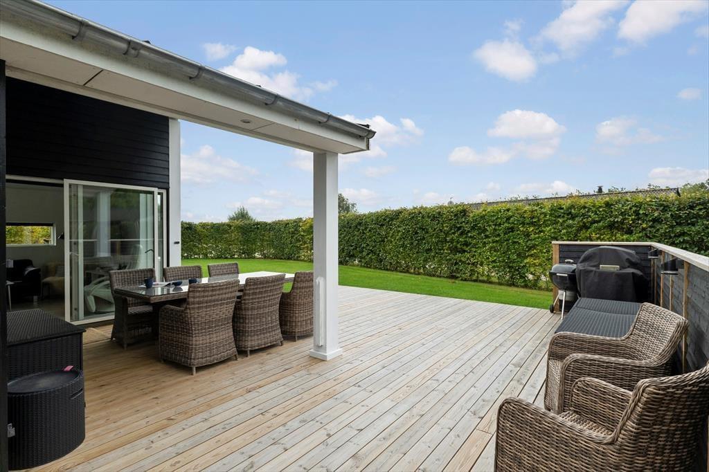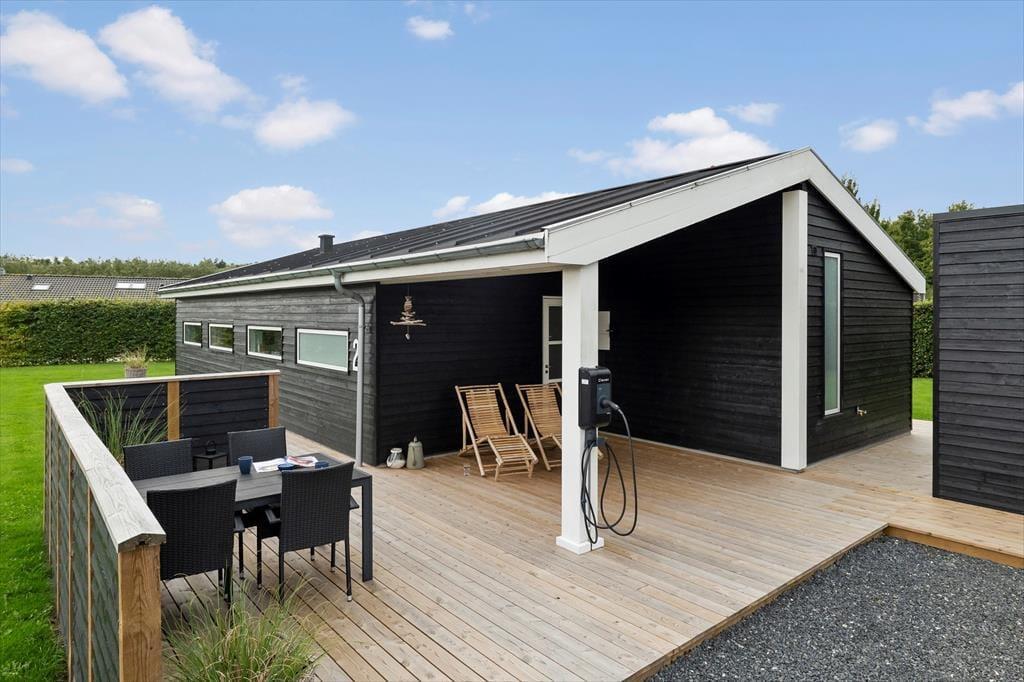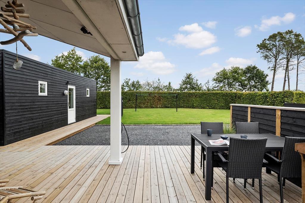 Das Ferienhaus ist nicht nur drinnen, sondern auch draußen ein fantastischer Ort. Die große Terrasse lädt sowohl zum Entspannen als auch zum Essen im Freien ein. Hier können Sie auf den bequemen Gartenmöbeln die wärmende Sonne genießen oder sich auf dem Rasen ausruhen. Die ruhige Umgebung vermittelt ein Gefühl von Frieden und Freiheit, in dem Sie sich erholen und Ihre Gedanken schweifen lassen können. An langen Sommerabenden können Sie den Grill anschmeißen und köstliche Mahlzeiten zubereiten, während Sie die Gesellschaft des anderen genießen. Das große Naturgrundstück bietet viel Platz zum Spielen und Entspannen, und bei schönem Wetter ist ein Ausflug zum Strand nur einen kurzen Spaziergang entfernt.