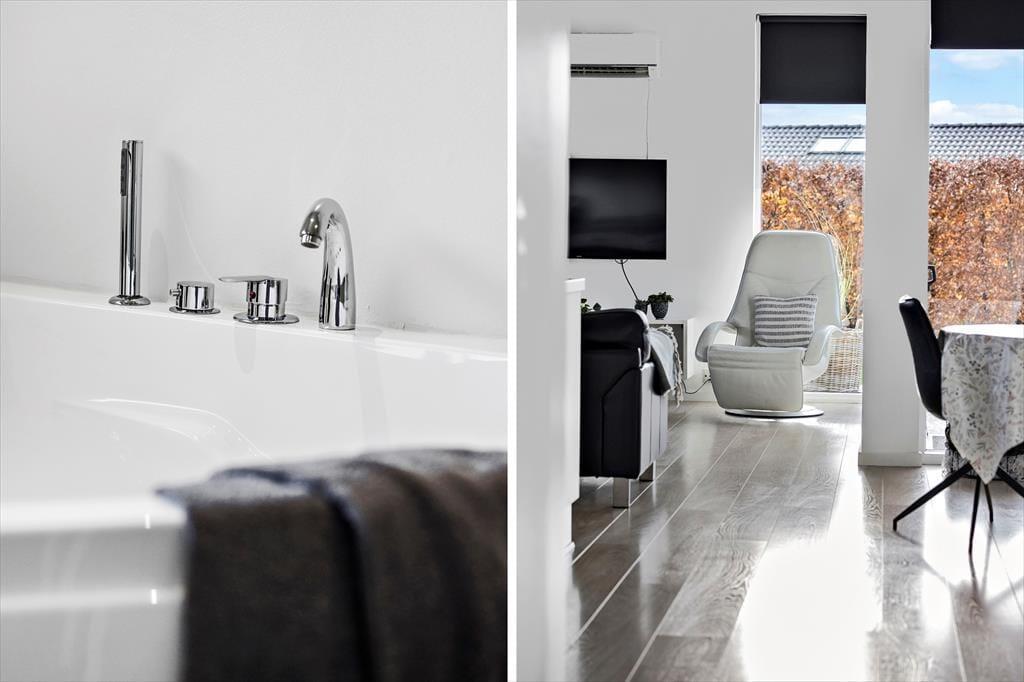 Wenn Sie dieses charmante Ferienhaus betreten, werden Sie von einer hellen und freundlichen Atmosphäre empfangen. Die offen gestalteten Räume und die geschmackvolle Einrichtung schaffen eine harmonische und ruhige Atmosphäre, in der Sie sich sofort wohlfühlen. Der zentrale Wohnbereich des Hauses, bestehend aus einer offenen Küche und einem gemütlichen Wohnzimmer, ist ideal, um sich mit Familie und Freunden zu treffen. Die großen Fenster lassen viel natürliches Licht herein und bieten einen tollen Blick auf die umliegende Natur. Hier können Sie sich mit einem guten Buch entspannen, das Abendessen am Esstisch genießen oder es sich auf dem Sofa gemütlich machen. Ein zusätzliches Plus ist das Nebengebäude, das mit zwei Schlafzimmern und einem eigenen Bad perfekt für die Privatsphäre von Familien oder Gruppen von Freunden ist.