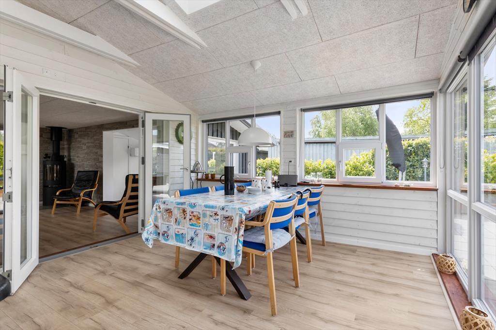 Dieses attraktive Ferienhaus in Øster Hurup bietet auf 109 m² eine gemütliche Ausstattung mit Kaminofen und moderner Elektroheizung. Die Küche ist komplett ausgestattet mit Geschirrspüler, Mikrowelle und Gefriertruhe, ideal für entspannte Mahlzeiten mit der Familie.