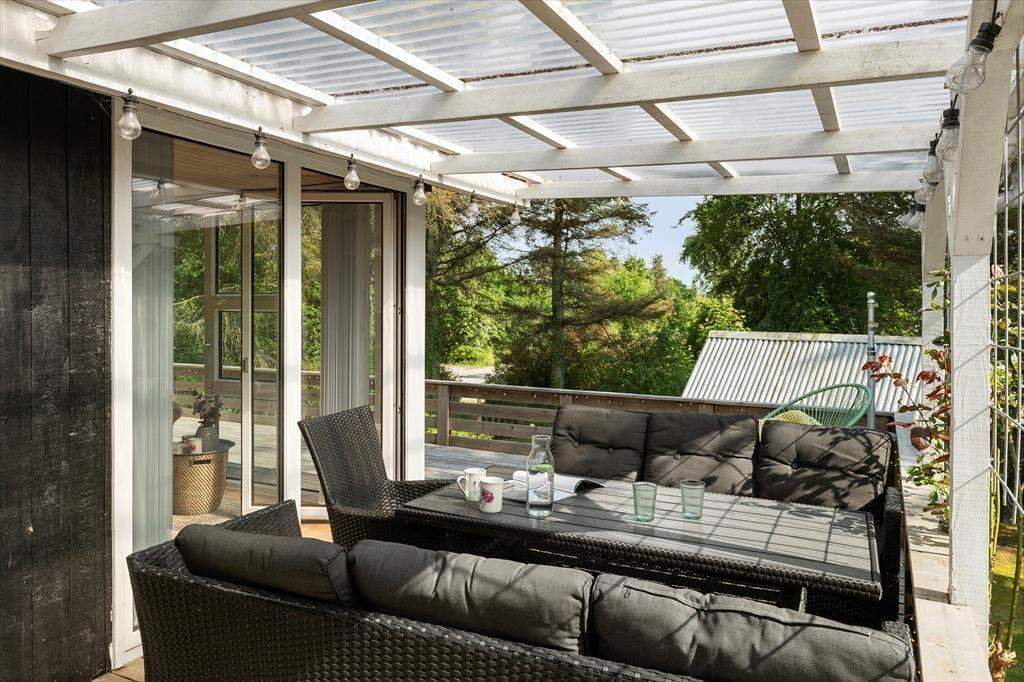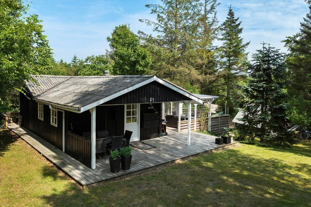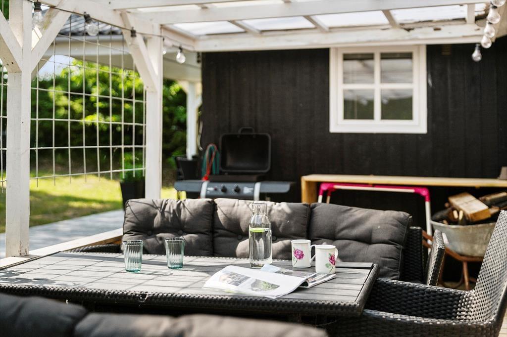 Rund um das gesamte Haus erstreckt sich eine schöne Terrasse, die Ihnen viele Möglichkeiten bietet, genau den sonnigen oder schattigen Platz zu finden, den Sie brauchen. Hier können Sie den Tag mit einem Morgenkaffee unter freiem Himmel beginnen, sich mittags mit einem Buch zurücklehnen und die Familie zum Grillen und gemütlichen Beisammensein versammeln, während die Sonne langsam hinter den Baumwipfeln untergeht. Der geschlossene Garten schafft einen sicheren Rahmen für das Leben im Freien – perfekt für spielende Kinder, wedelnde Hunde und Erwachsene, die die Urlaubsidylle in Ruhe und Frieden genießen möchten. Und das Beste daran? Die Terrasse und der Garten fühlen sich wie eine natürliche Erweiterung des Hauses an, sodass es einfach ist, das Urlaubsleben mit nach draußen zu nehmen. Hier ist Platz für Aktivitäten und Entspannung, und wenn das Wetter es zulässt, können alle Mahlzeiten im Freien eingenommen werden.