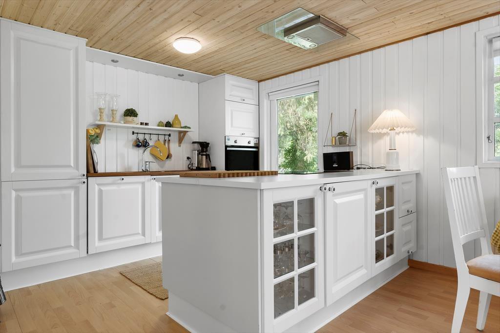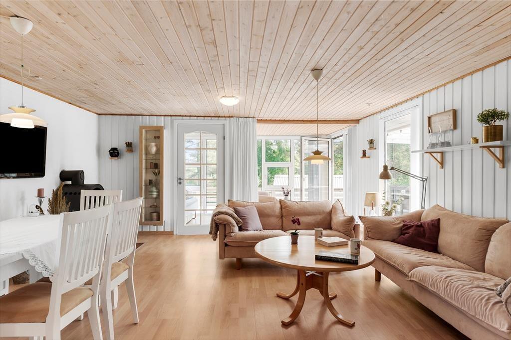 Im Inneren erwartet Sie eine helle und einladende Atmosphäre, in der Sie sich sofort wie in einem Ferienhaus fühlen. Die Einrichtung ist warm und gemütlich mit schönen Details und einer angenehmen Geräumigkeit, die es Ihnen leicht macht, sich wohlzufühlen. Hier wurde an den Komfort gedacht, und man spürt sofort, dass das Haus für gemütliche Urlaubstage mit der Familie oder guten Freunden geschaffen wurde. Der offene Grundriss macht es leicht, zusammen zu sein – egal, ob jemand gerade kocht, während andere lesen, Spiele spielen oder einfach nur mit einem guten Film im Wohnzimmer entspannen. Die großen Fenster sorgen für natürliches Licht und schaffen eine ruhige und entspannte Atmosphäre in allen Räumen. Das Haus bietet Platz für sechs Personen, und Sie können auch gerne Ihren Familienhund mitbringen – er wird garantiert sowohl das angenehme Raumklima als auch den geschlossenen Garten draußen genießen.