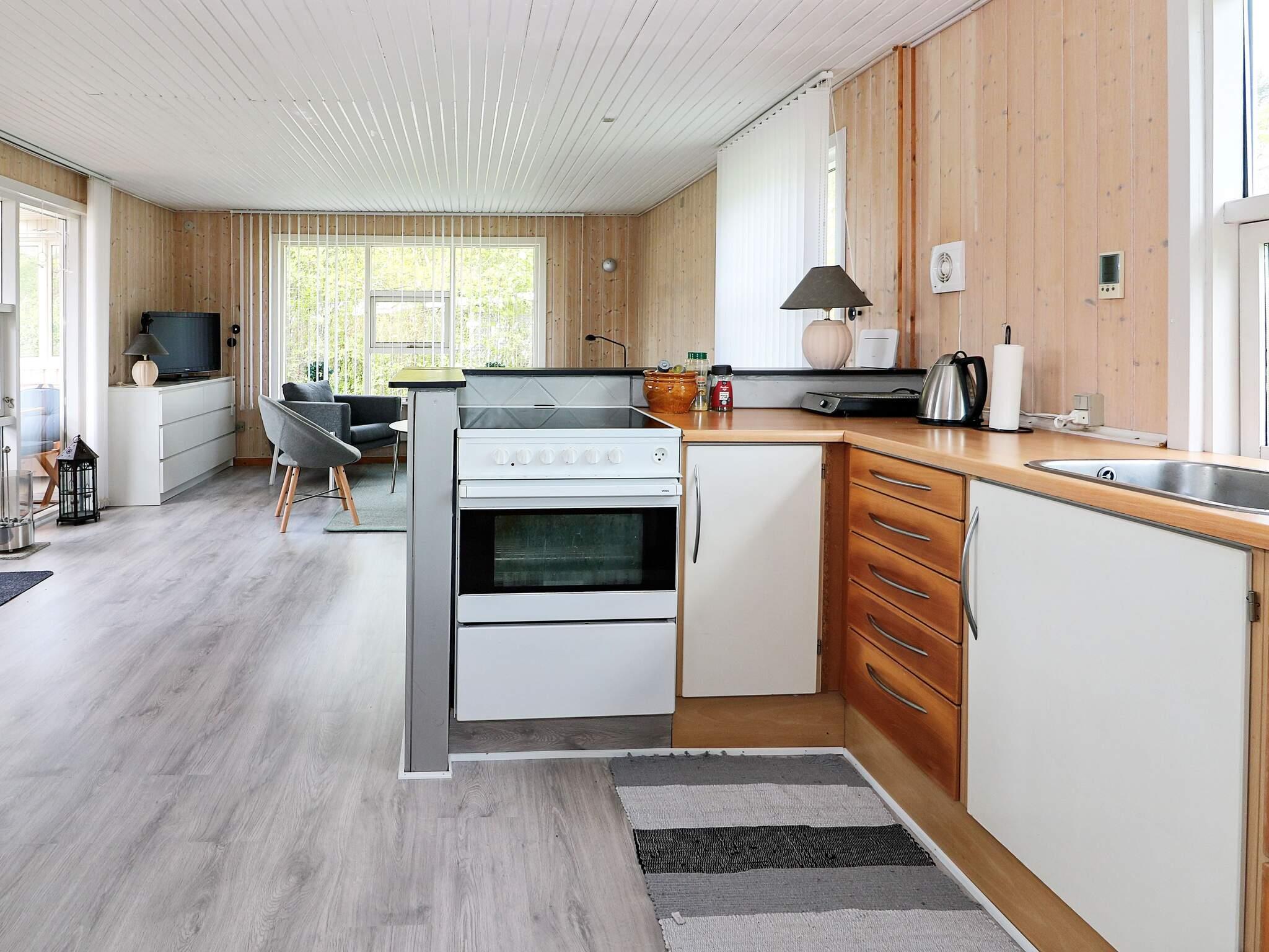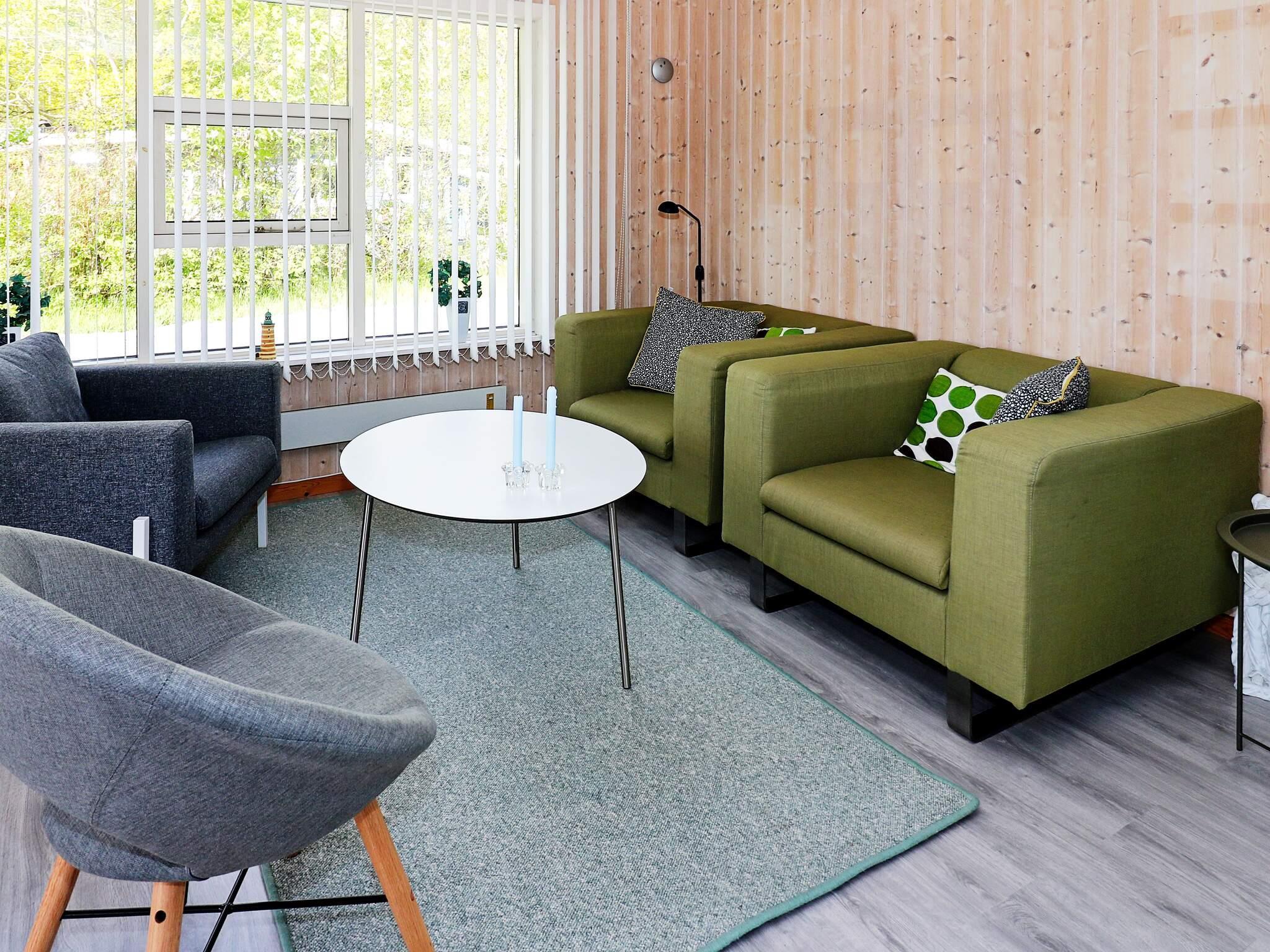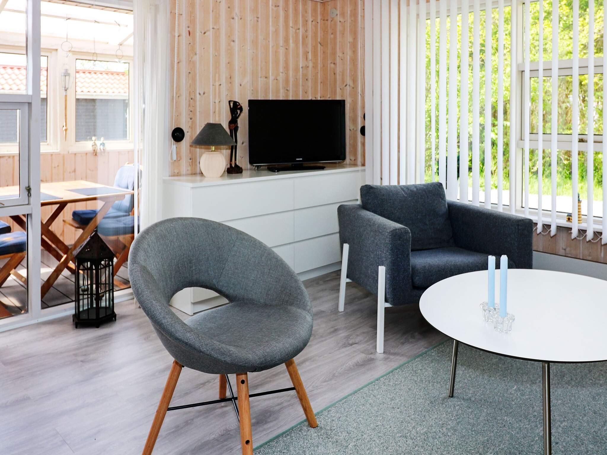 Innen helles Wohnzimmer mit gutem Essbereich, der zur Küche hin offen ist. Von diesem Raum aus hat man Zugang zur Terrassenfläche des Hauses. Zudem ein Schlafzimmer mit Doppelbett und zweites Schlafzimmer mit 2 Einzelbetten sowie Badezimmer mit Dusche und WC im Haus. Neben dänischen und deutschen TV-Sendern stehen auch Eurosport und Disney Channel zur Auswahl.