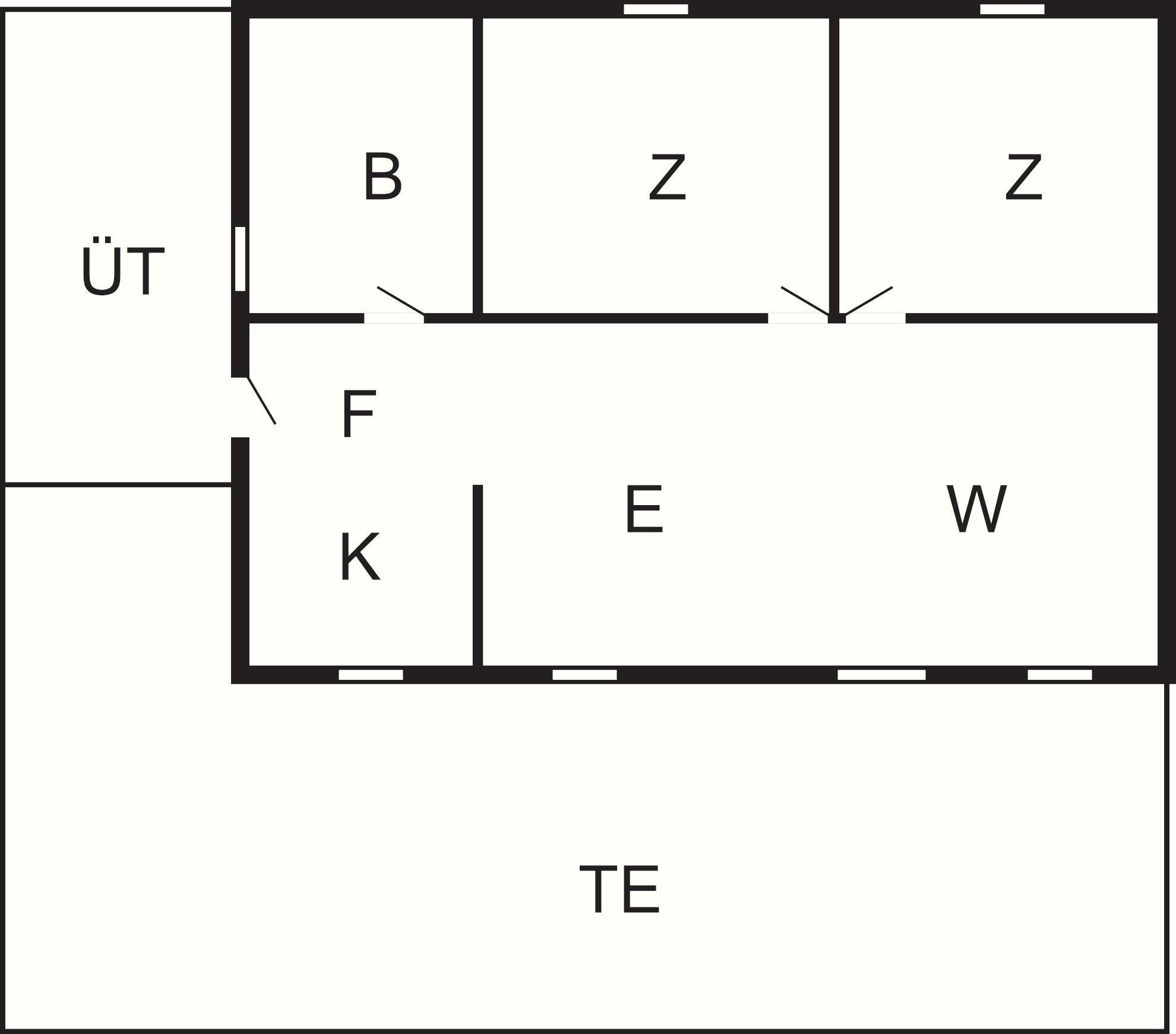 Off. Küche: E-Herd, Kühl-Gefrier-Kombi, Abzugsh., Kaffeem.