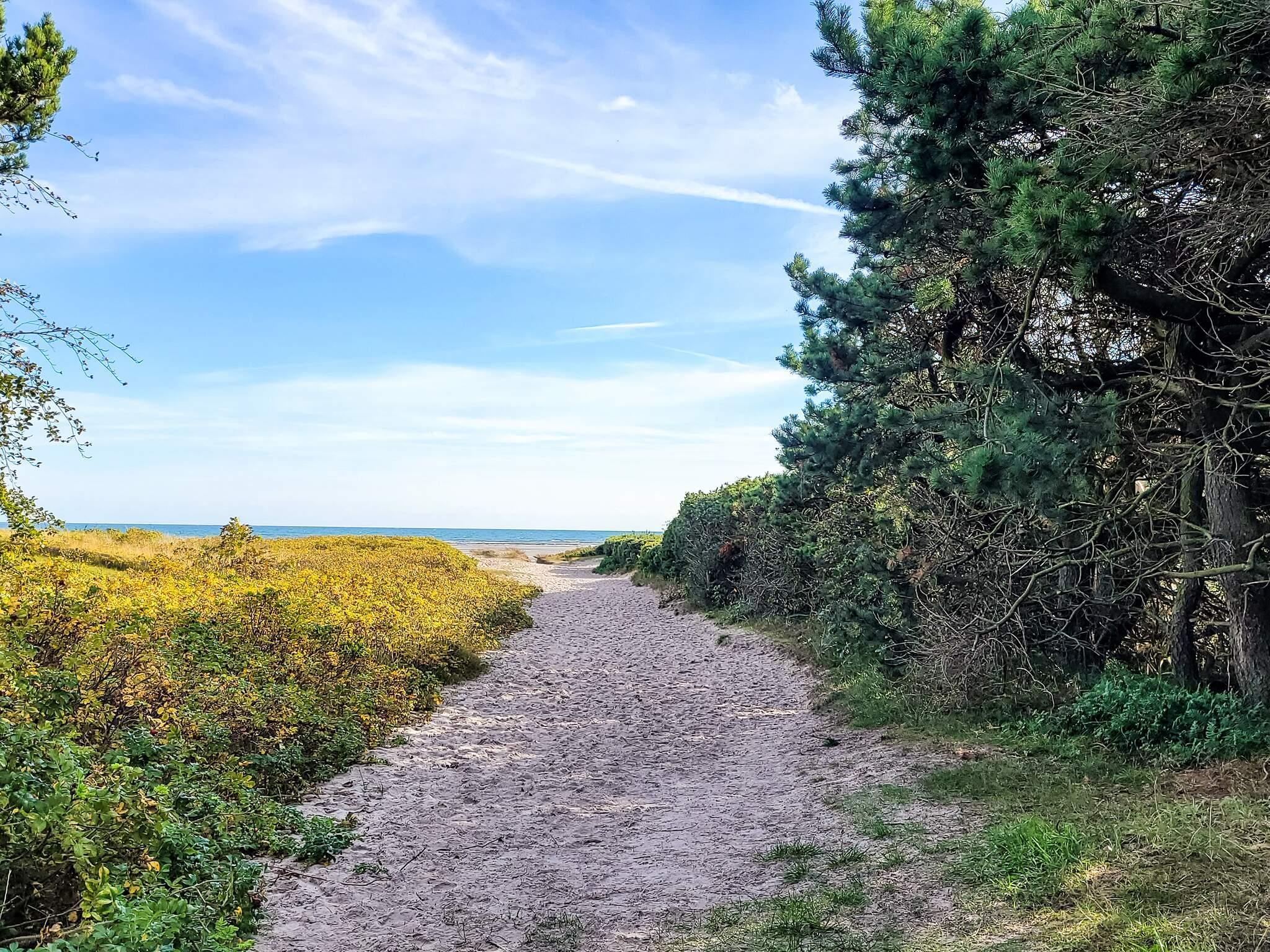 Ferienwohnung mit Meerblick und zugleich besonders attraktiver Lage im Ort, direkt neben dem kinderfreundlichen Strandufer sowie unweit des kleinen Hafens und des Ortskerns von Øster Hurup.