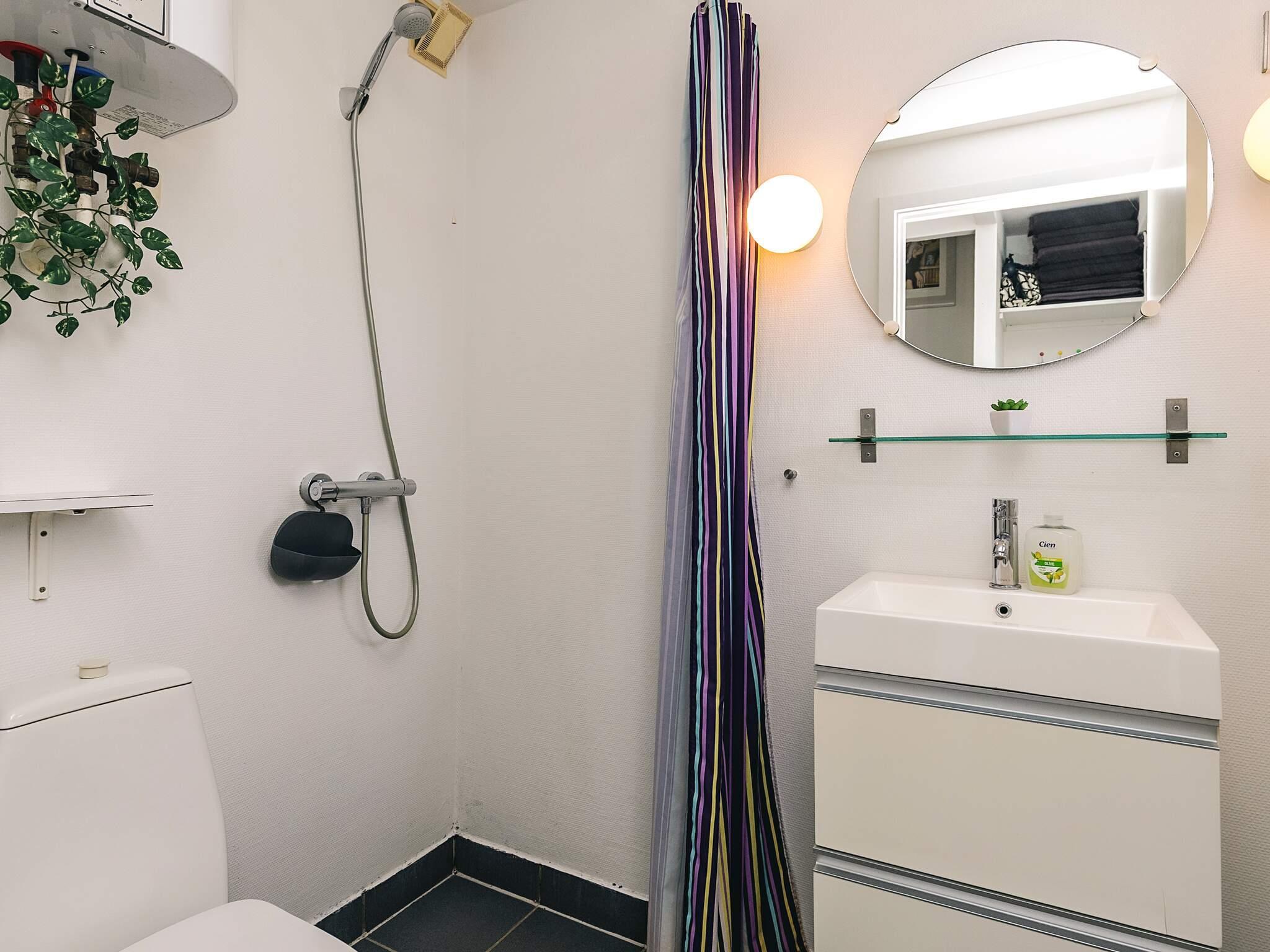 Bad: WC, Waschb., Dusche, Fußbodenheiz.
