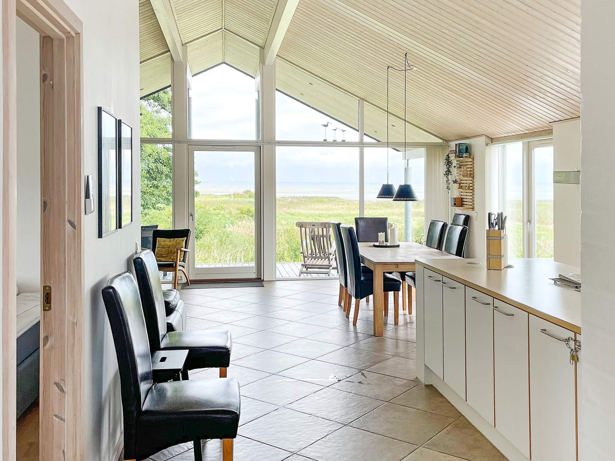 Dieses einladende Ferienhaus in der Nähe von Øster Hurup vereint maritimen Charme, modernen Komfort und die Schönheit der Natur perfekt. Die durchdachte Gestaltung mit stilvollen Möbeln und großen Fenstern sorgt für ein helles und einladendes Ambiente, in dem Sie vom ersten Moment an entspannen können. Der offene Wohnbereich geht nahtlos in den Ess- und Wohnbereich über und bietet so einen gemütlichen Ort für gemeinsame Mahlzeiten, Zeit mit der Familie oder einfach zum gemütlichen Lesen.