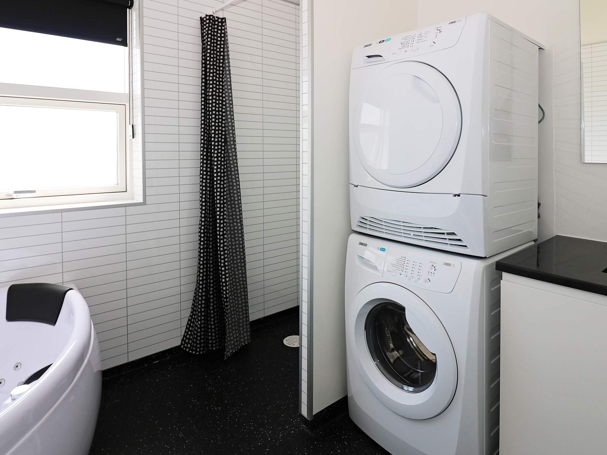 Bad: Waschm, Trockner, WC, Waschb., Dusche, Fußbodenheiz.