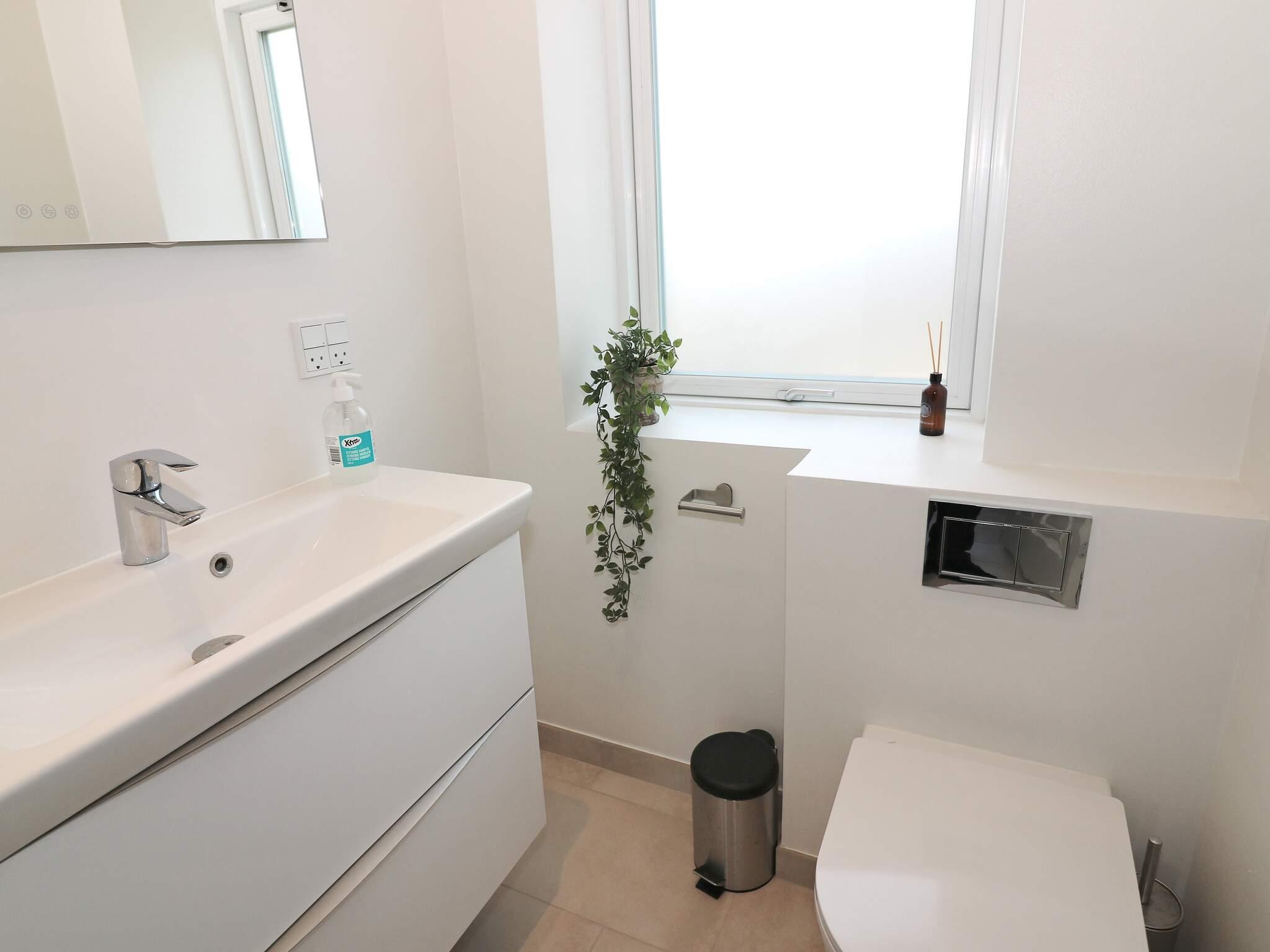 Bad: Waschm, Trockner, WC, Waschb., Dusche, Fußbodenheiz.