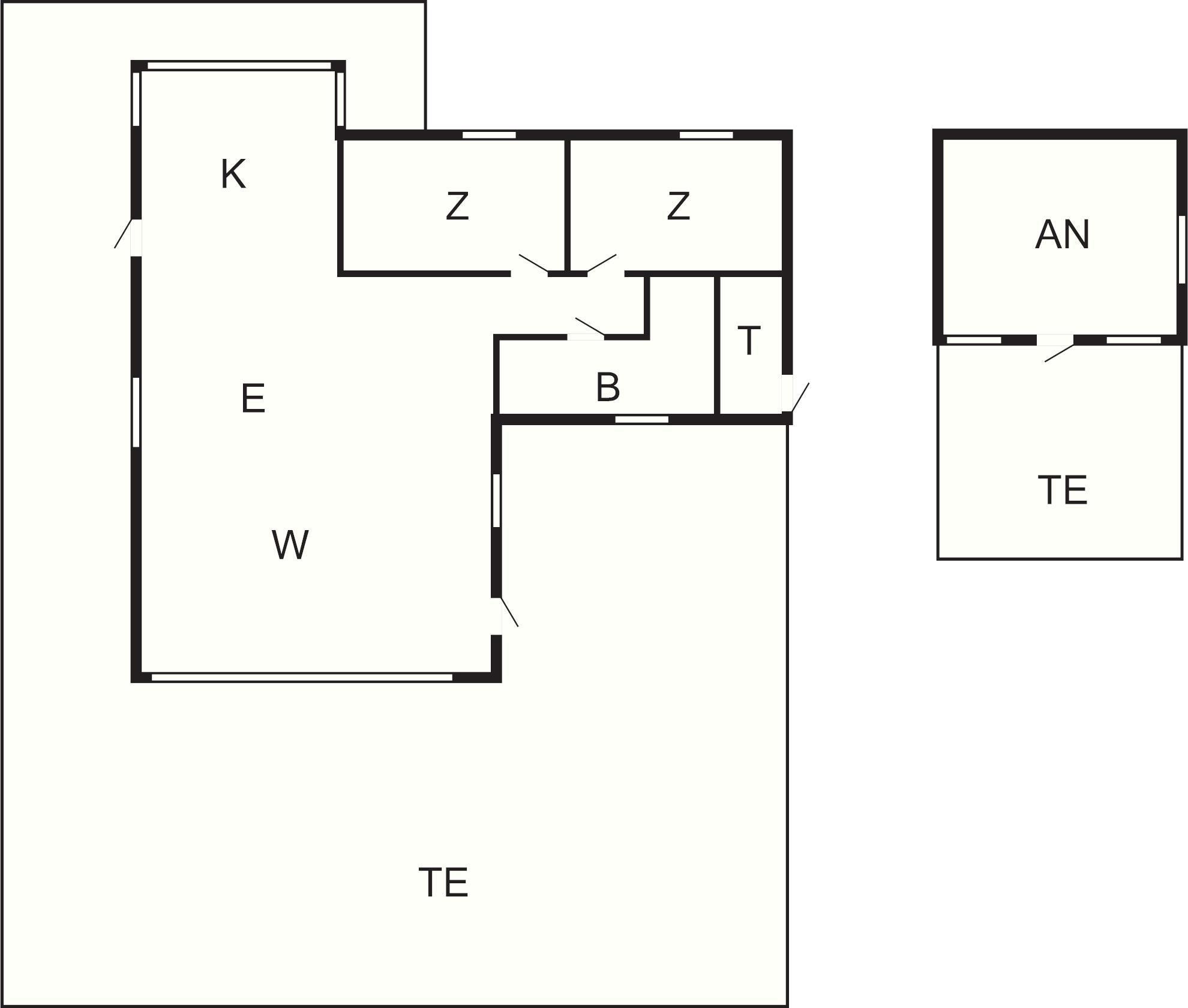Nebenan auf dem Grundstück separater Annex mit einem Bett in 3/4-Breite sowie 2 Kojen im Etagenbett. Daneben Technikraum mit Waschmaschine.