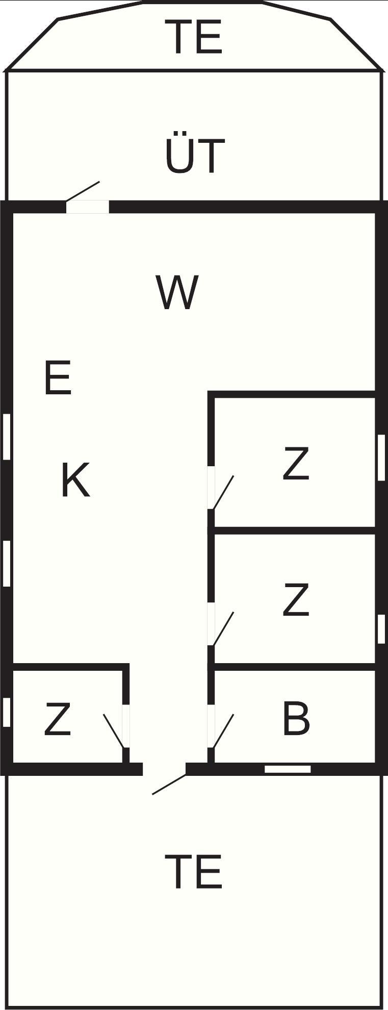 Im Haus geräumiger, heller Küchen-/Wohnbereich für das Familienleben, mit Essecke und Kaminofen für kühlere Abende. Davor liegt eine teilweise überdachte Terrassenfläche. Außerdem drei Schlafzimmer im Haus, eines davon mit einem Doppelbett in sogenannter 3/4 Breite. Bad mit Dusche/WC.