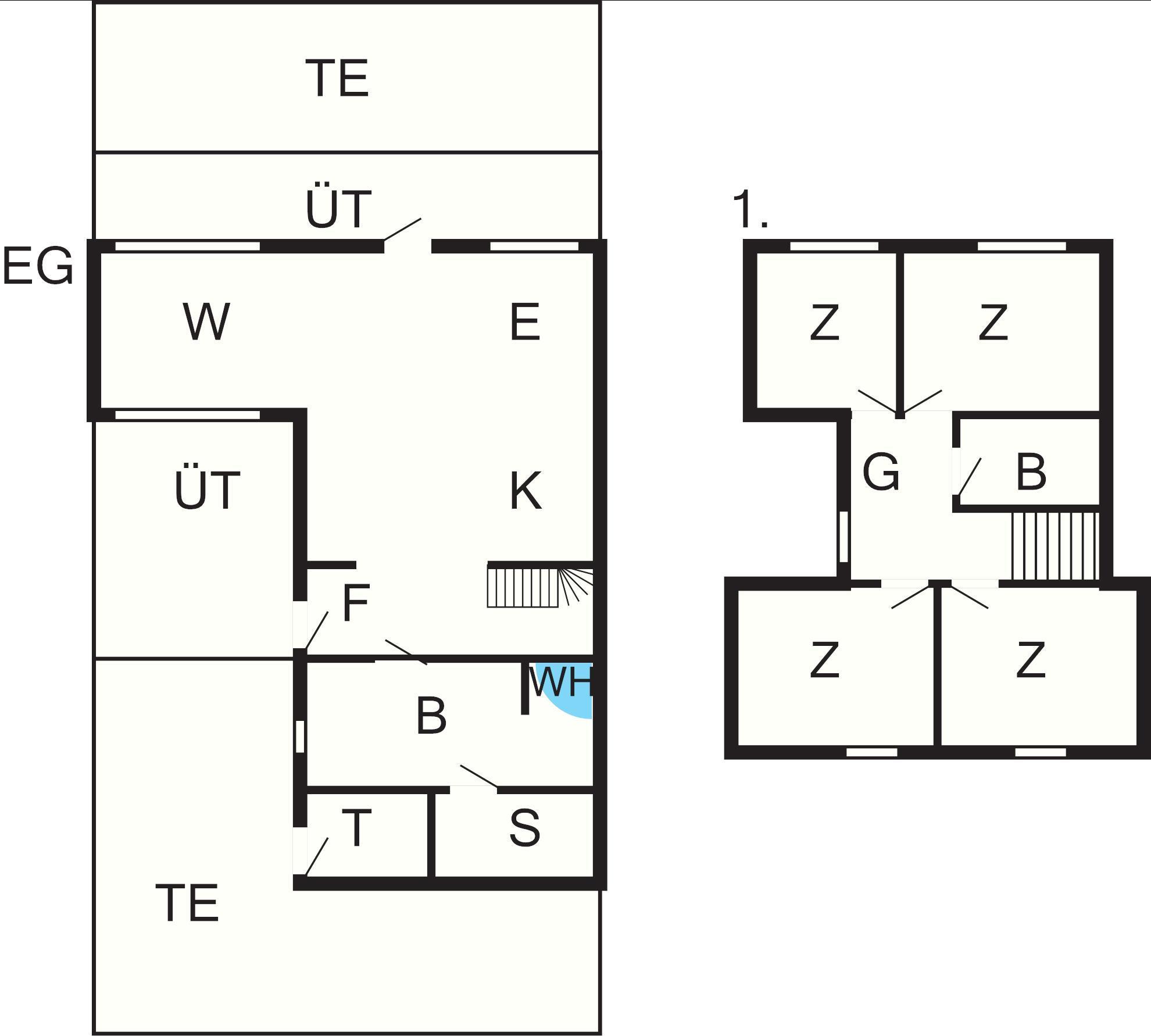 Bad: Waschm., WC, Waschb., Dusche, Fußbodenheiz.