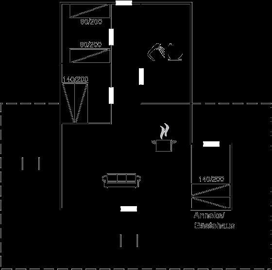 Die Schlafplätze verteilen sich auf 3 Schlafräume. 4 Schlafplätze in Doppelbetten. 2 Schlafplätze in Einzelbetten. 2 von diesen Schlafplätzen befinden sich im Gästehaus.