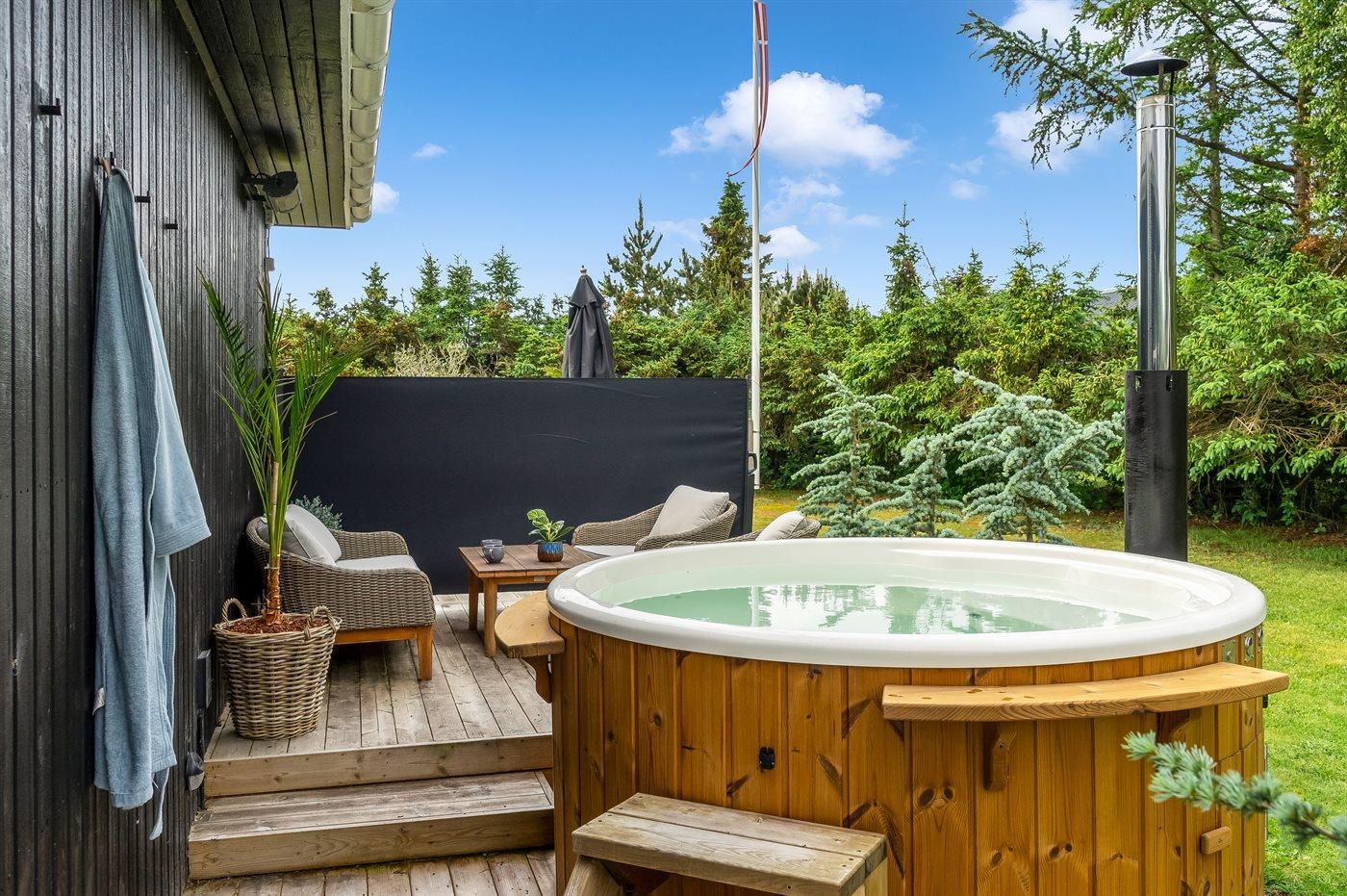 Schönes Ferienhaus in Øster Hurup mit Terrasse, Whirlpool und Elektroauto-Ladestation, 600 m vom Strand entfernt.