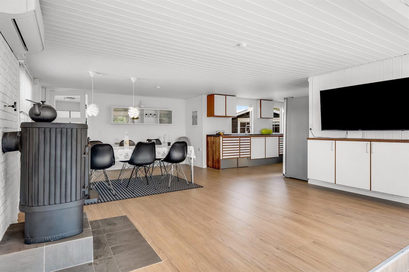 Das Ferienhaus eignet sich für 10 Personen. Die Ferienunterkunft hat eine Wohnfläche von 99 m² und wurde 1973 gebaut. Es ist erlaubt 1 Haustier mitzubringen. In der Ferienunterkunft ist eine energiesparender Luft zu Luft Wärmepumpe installiert. Die Ferienunterkunft ist mit Waschmaschine ausgestattet. Wäschetrockner. Es gibt außerdem einen Kaminofen. Für die jüngsten Feriengäste ist 1 Kinderhochstuhl vorhanden.