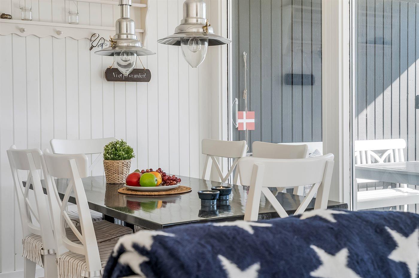Die Ferienunterkunft liegt auf einem 654 m² großen Gartengrundstück. Die Entfernung zum Meer beträgt 150 m. Die Entfernung zum Fjord beträgt 12100 m. Die nächste Einkaufsmöglichkeit liegt 1100 m entfernt. In einem Abstand von 18200 m gibt es einen Golfplatz. Es steht ein offenes Terrassenareal zur Verfügung. Außerdem gibt es überdachte Terrasse.Lagerfeuerstelle. Es steht ein Grill zur Verfügung. Parkplatz auf dem Grundstück.