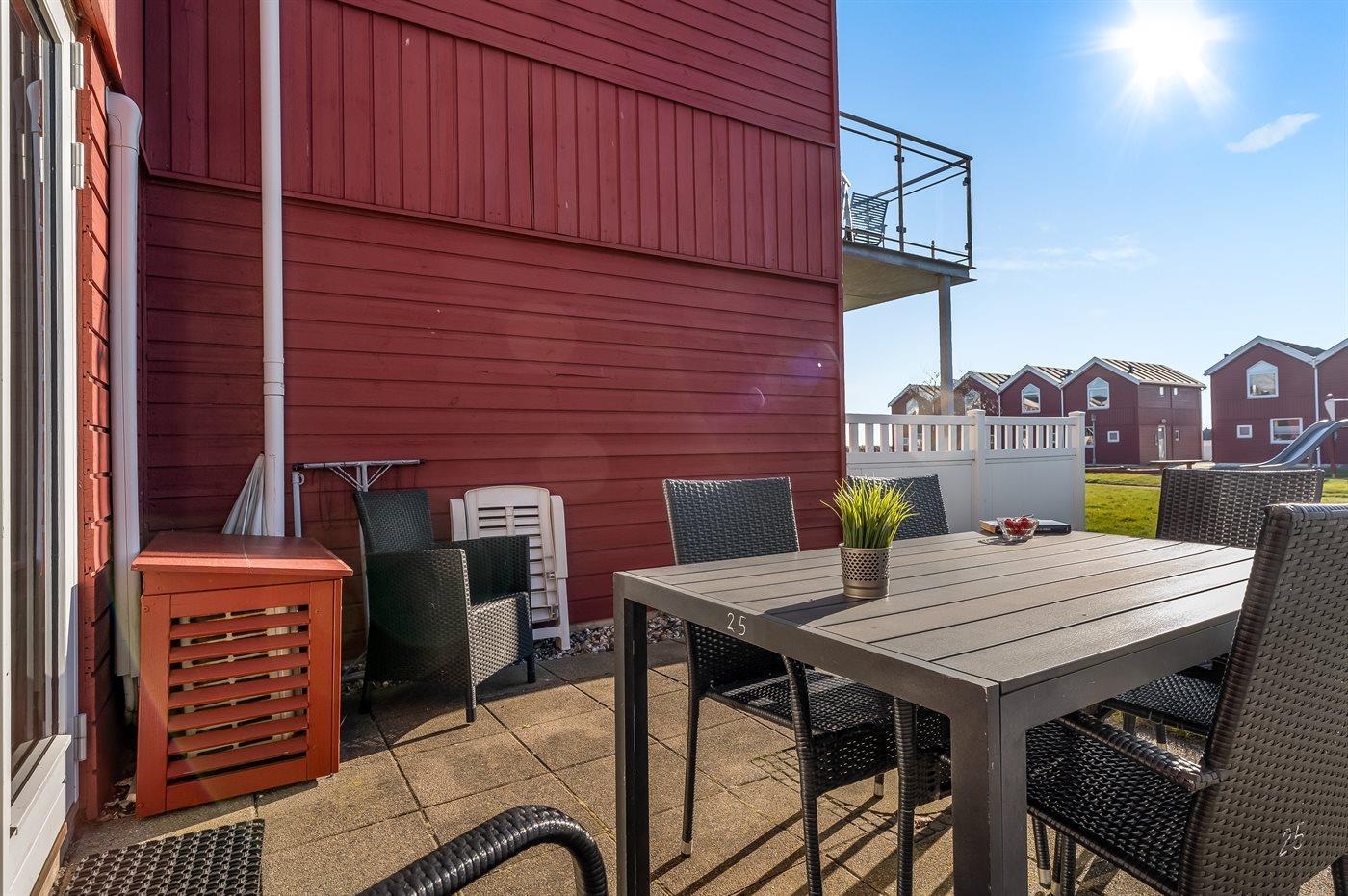 Schöne Ferienwohnung in Øster Hurup, 75 m vom Sandstrand mit Hafenblick und Terrasse für entspannte Urlaubstage.