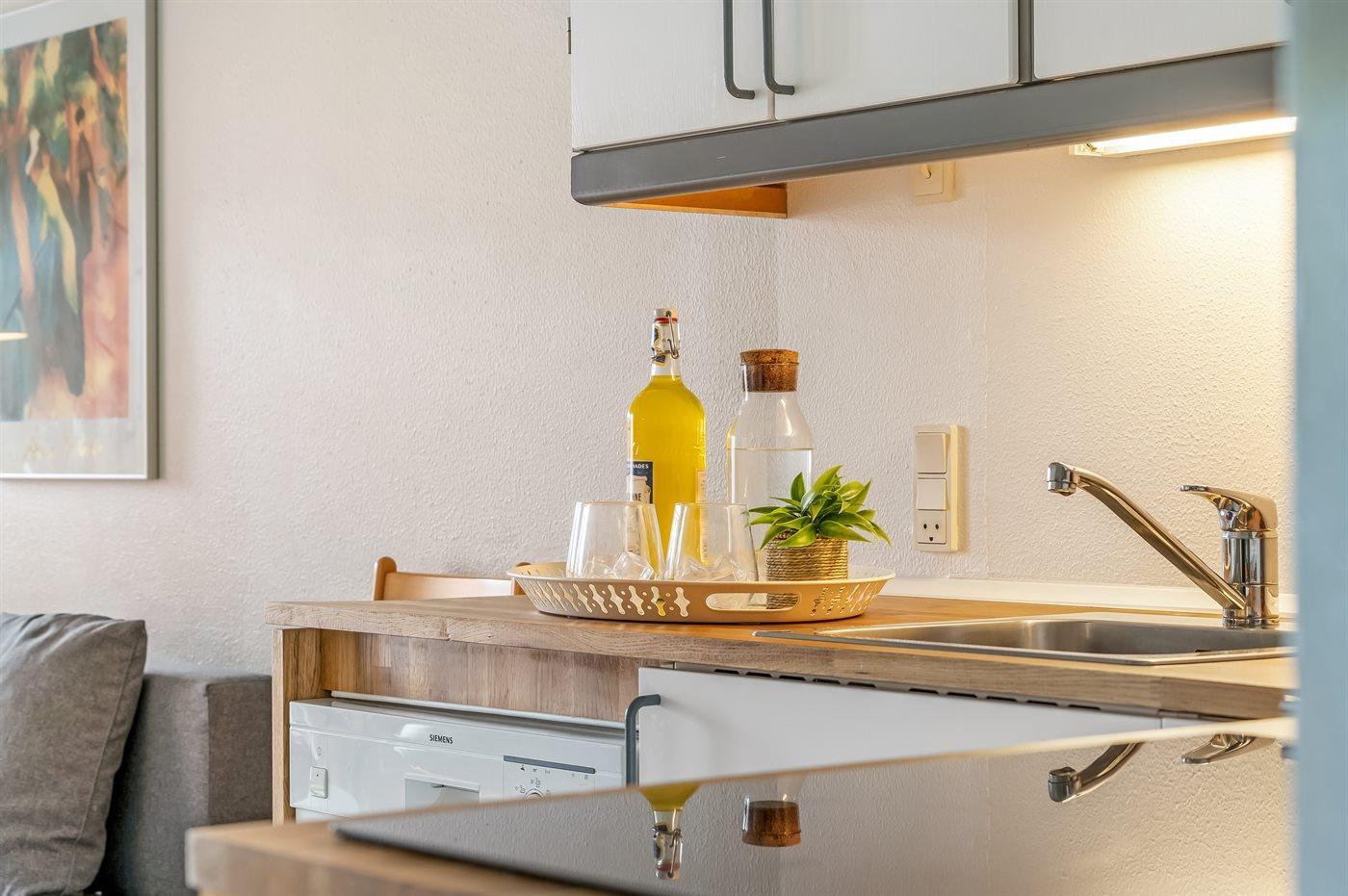 Die Küche ist mit Kühlschrank ausgestattet. Außerdem gibt es 4 Keramik-Kochfelder, Umluftofen, Mikrowelle, Airfryer sowie Geschirrspüler.