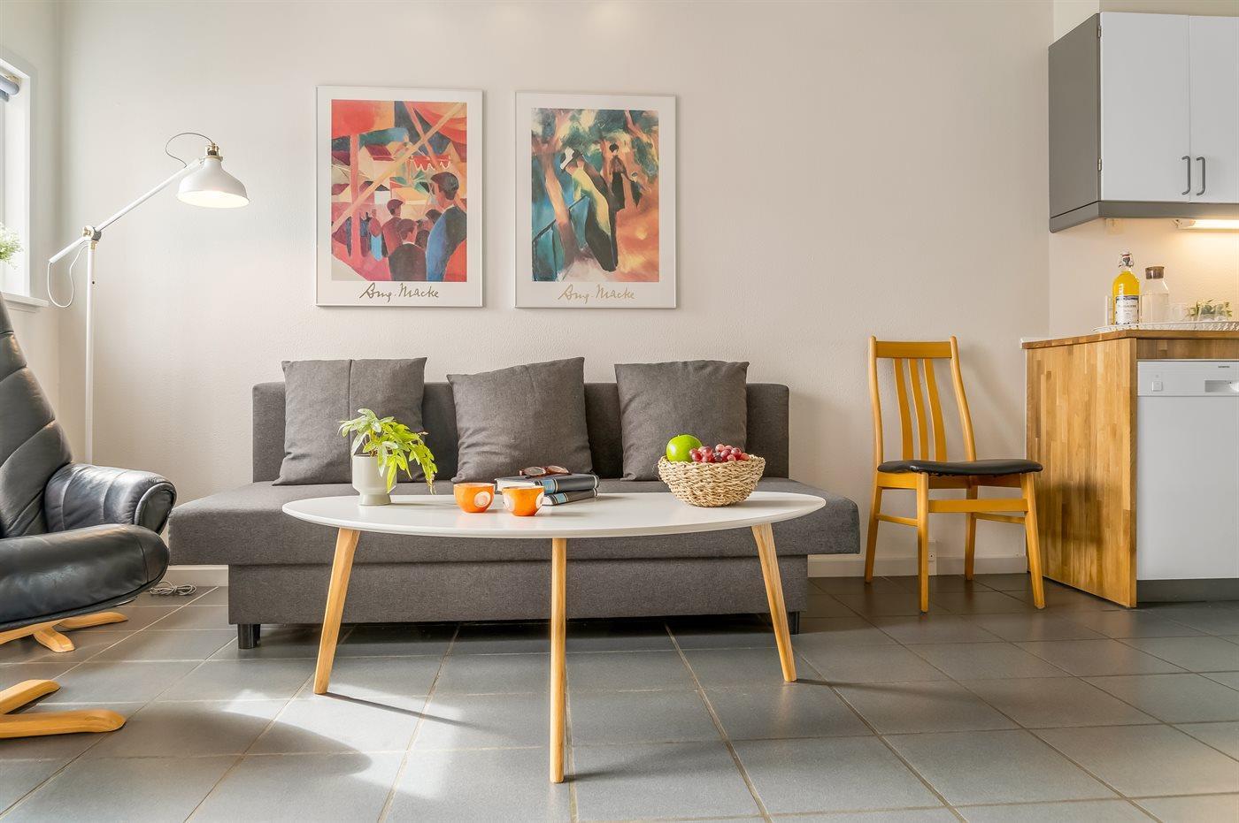 . Die Entfernung zum Meer beträgt 75 m. Die Entfernung zum Fjord beträgt 11100 m. Die nächste Einkaufsmöglichkeit liegt 300 m entfernt. In einem Abstand von 16200 m gibt es einen Golfplatz. Es steht ein offenes Terrassenareal zur Verfügung.
