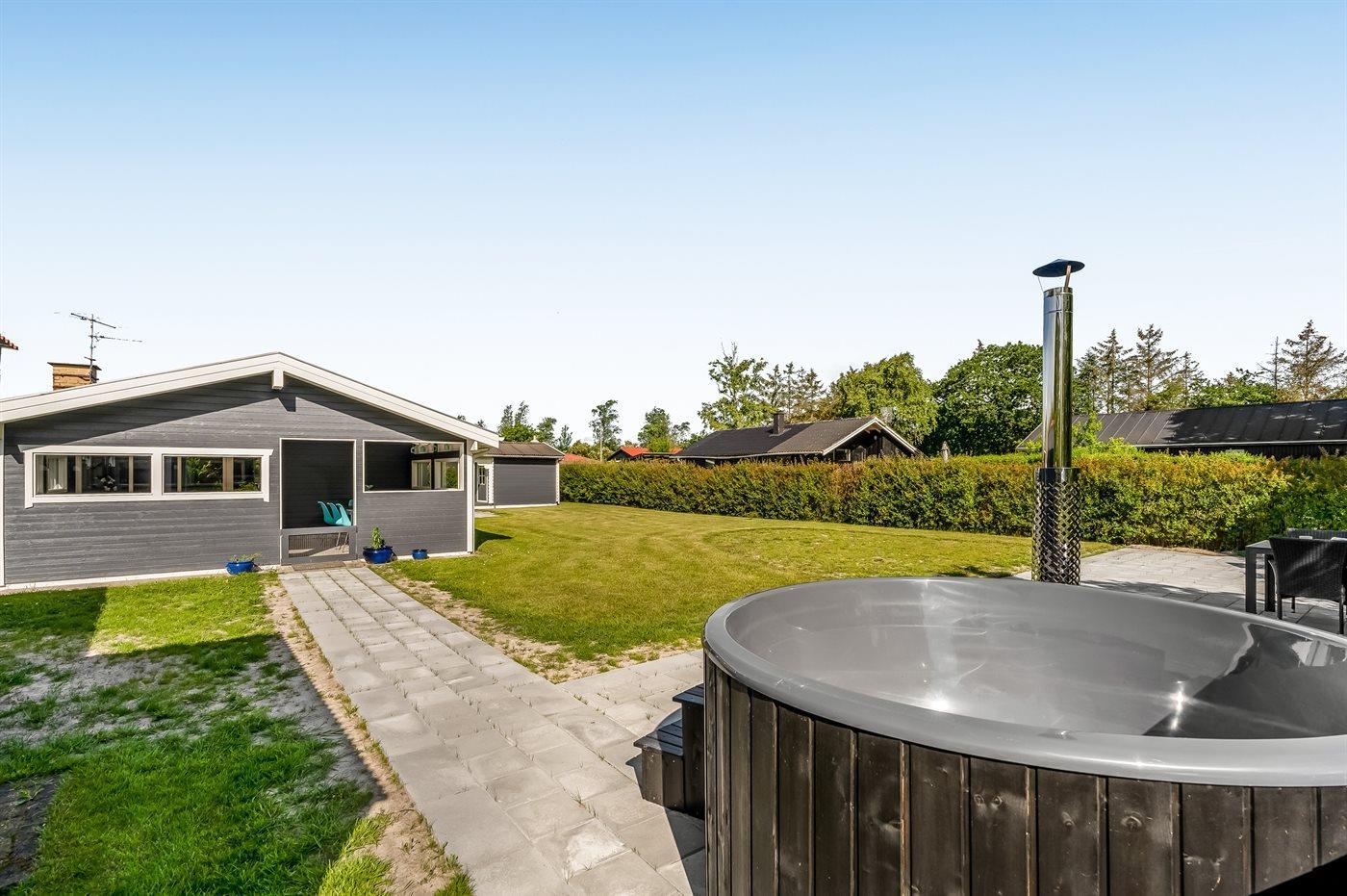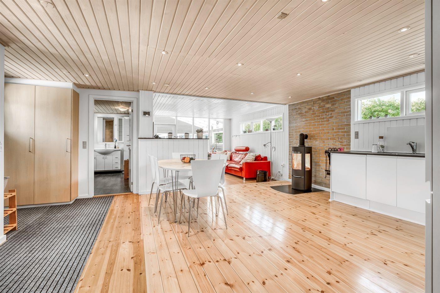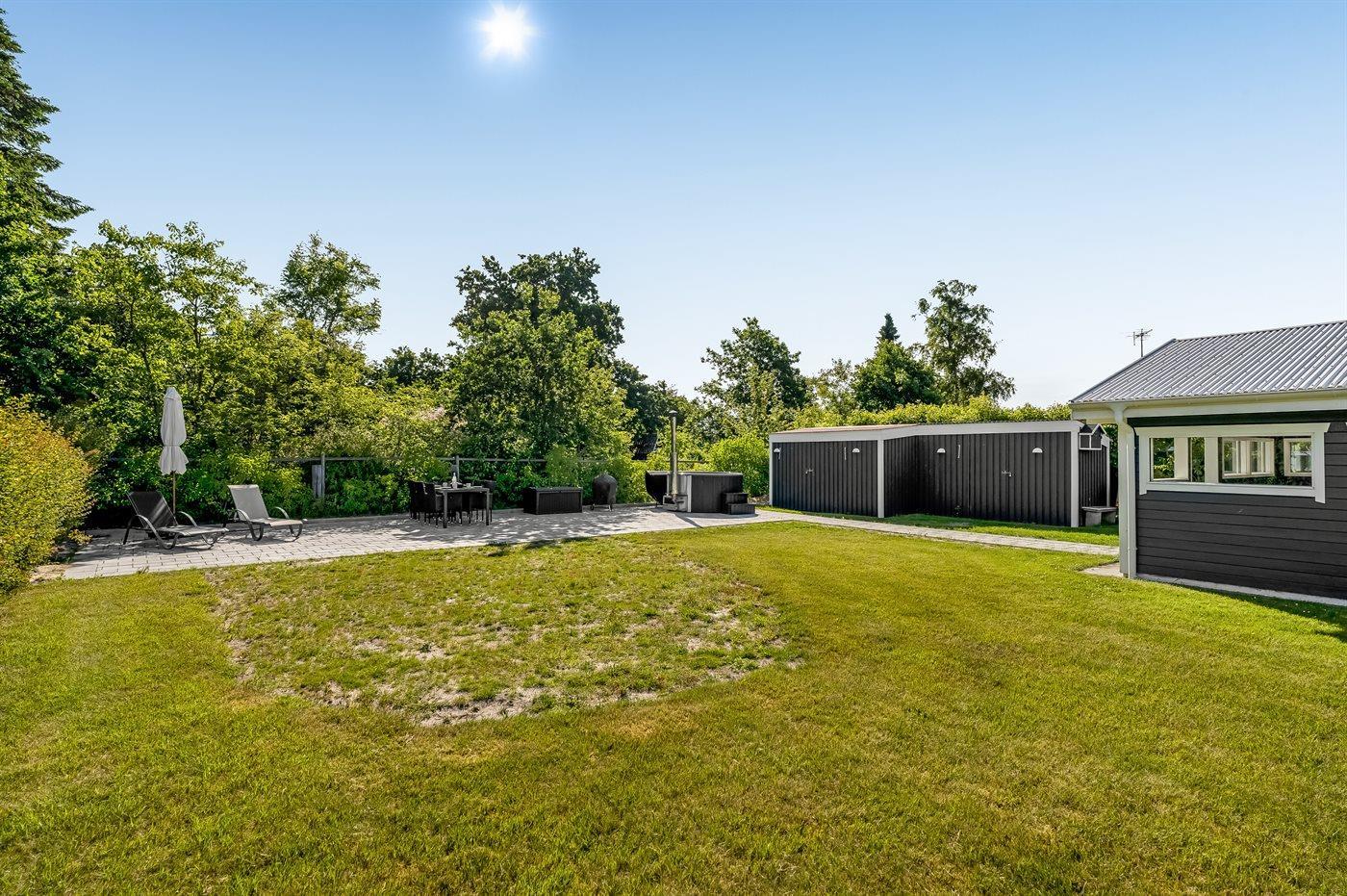 Die Ferienunterkunft liegt auf einem 800 m² großen Gartengrundstück. Die Entfernung zum Meer beträgt 350 m. Die Entfernung zum Fjord beträgt 9300 m. Die nächste Einkaufsmöglichkeit liegt 1600 m entfernt. In einem Abstand von 14600 m gibt es einen Golfplatz. Es steht ein offenes Terrassenareal zur Verfügung. Außerdem gibt es überdachte Terrasse. Trampolin. Es steht ein Grill zur Verfügung. Es ist ein Ladestecker für Elektroautos installiert. Ladestecker Typ 2. Mit einer Ladeleistung von 11 kW. Parkplatz auf dem Grundstück.