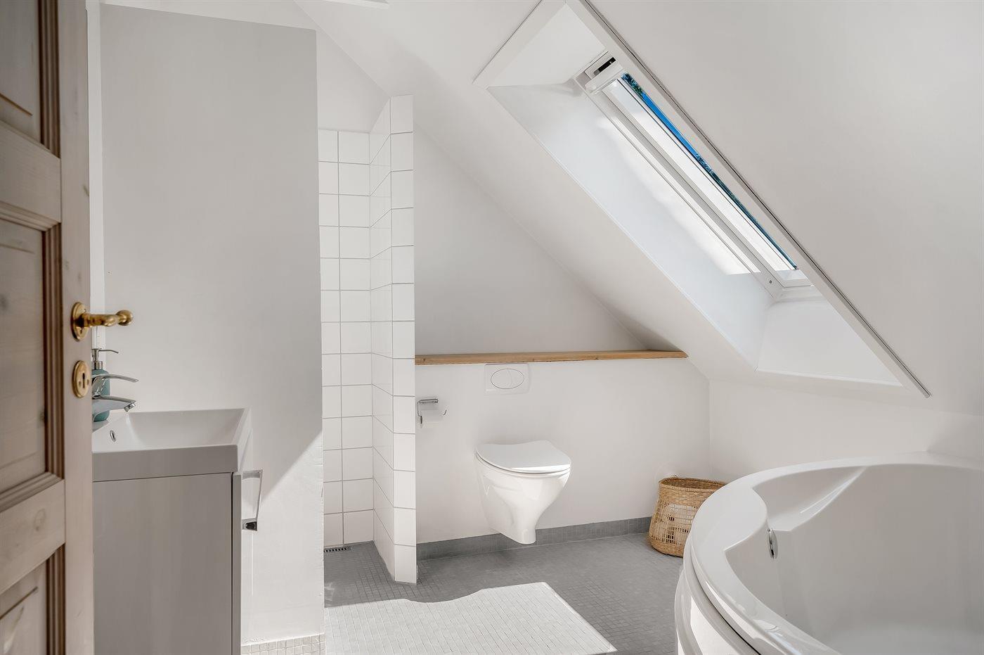 Es gibt 2 Badezimmer mit Fußbodenheizung; 1 mit Duschnische und 1 mit Badewanne.