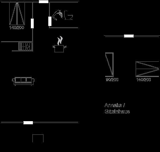Die Schlafplätze verteilen sich auf 2 Schlafräume. 4 Schlafplätze in Doppelbetten.1 Schlafplatz in einem Einzelbett. 3 von diesen Schlafplätzen befinden sich im Gästehaus.