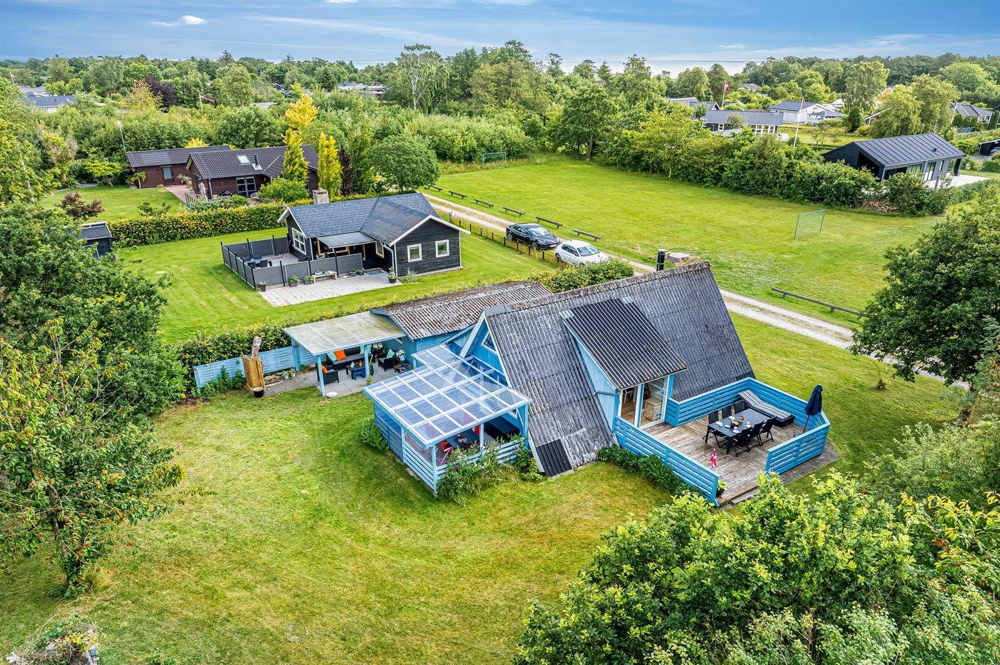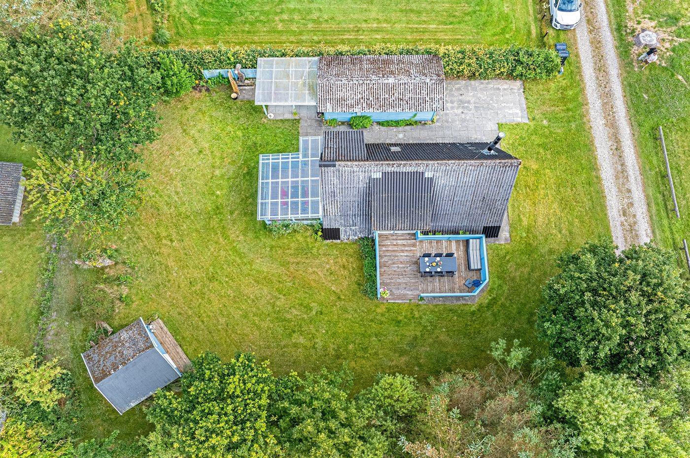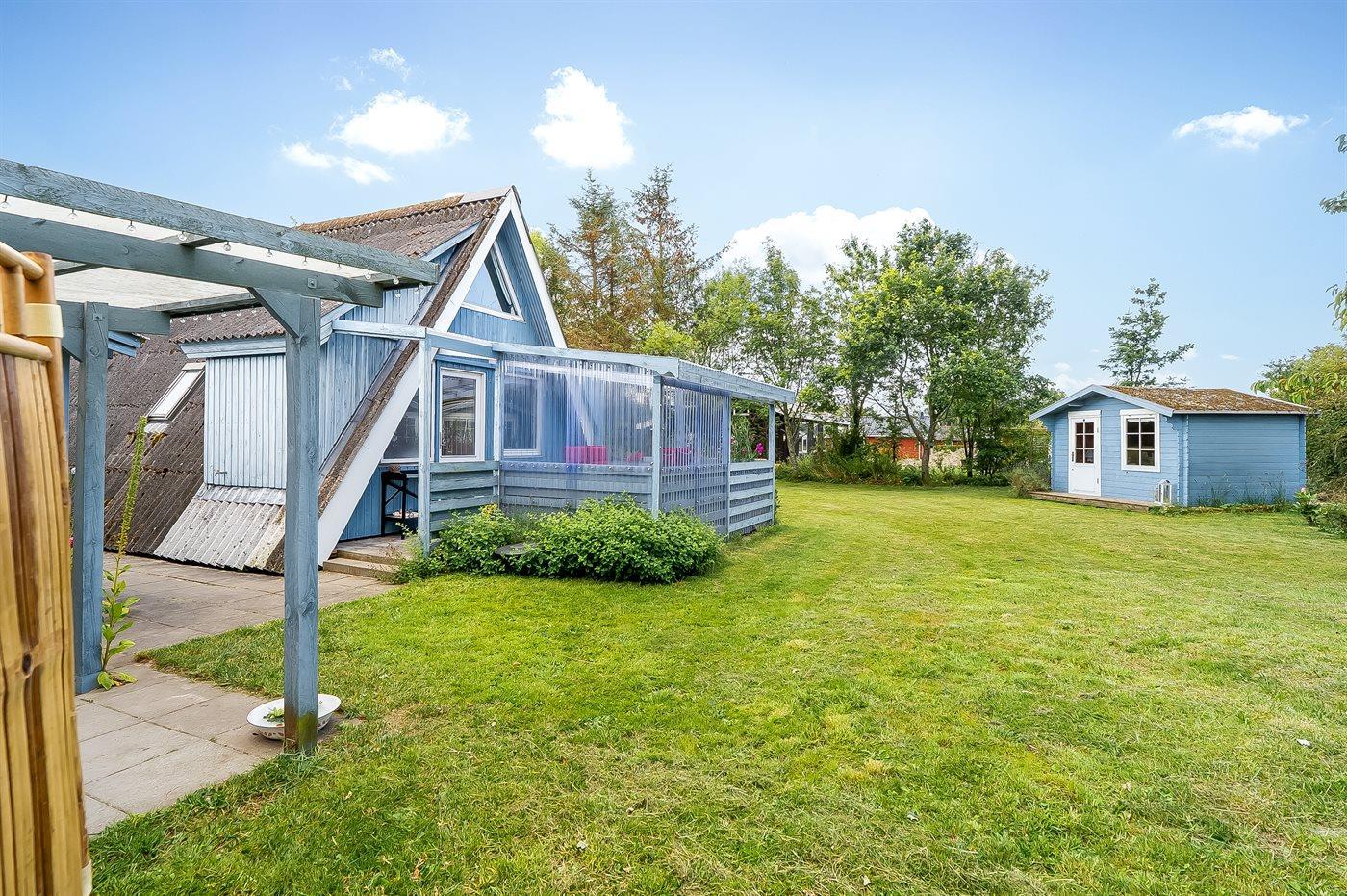 Gemütliches Ferienhaus in Øster Hurup mit separatem Gästehaus, überdachter Terrasse und Nähe zum Meer für erholsame Urlaubstage.